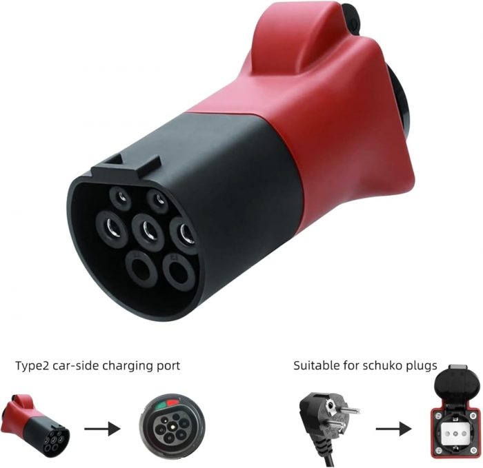 Type 2 to Schuko EV Adapter – This discharge adapter can convert an electric vehicle’s TYPE-2 charging connector into a European standard outlet to supply power to other devices while camping or outdoors.