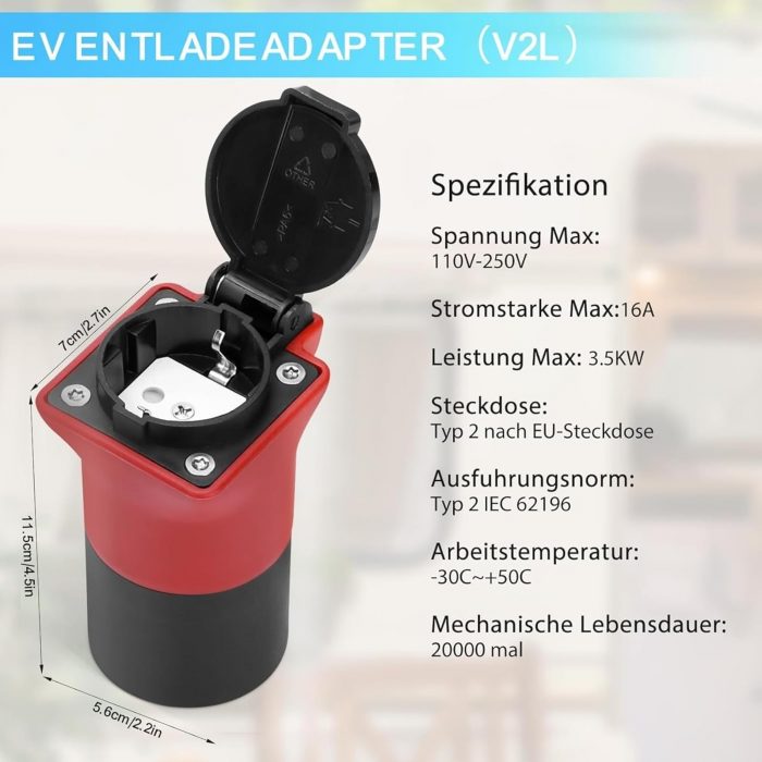 Sé el primero en valorar “Applearwen V2L EV Adapter 3.5KW 16A 220V Schuko Vehicle to Charge Adapter V2L EV Type 2 Schuko Adapter Type 2 External Discharge Converter with MG4 MG5 MG ZS” Cancelar la respuesta