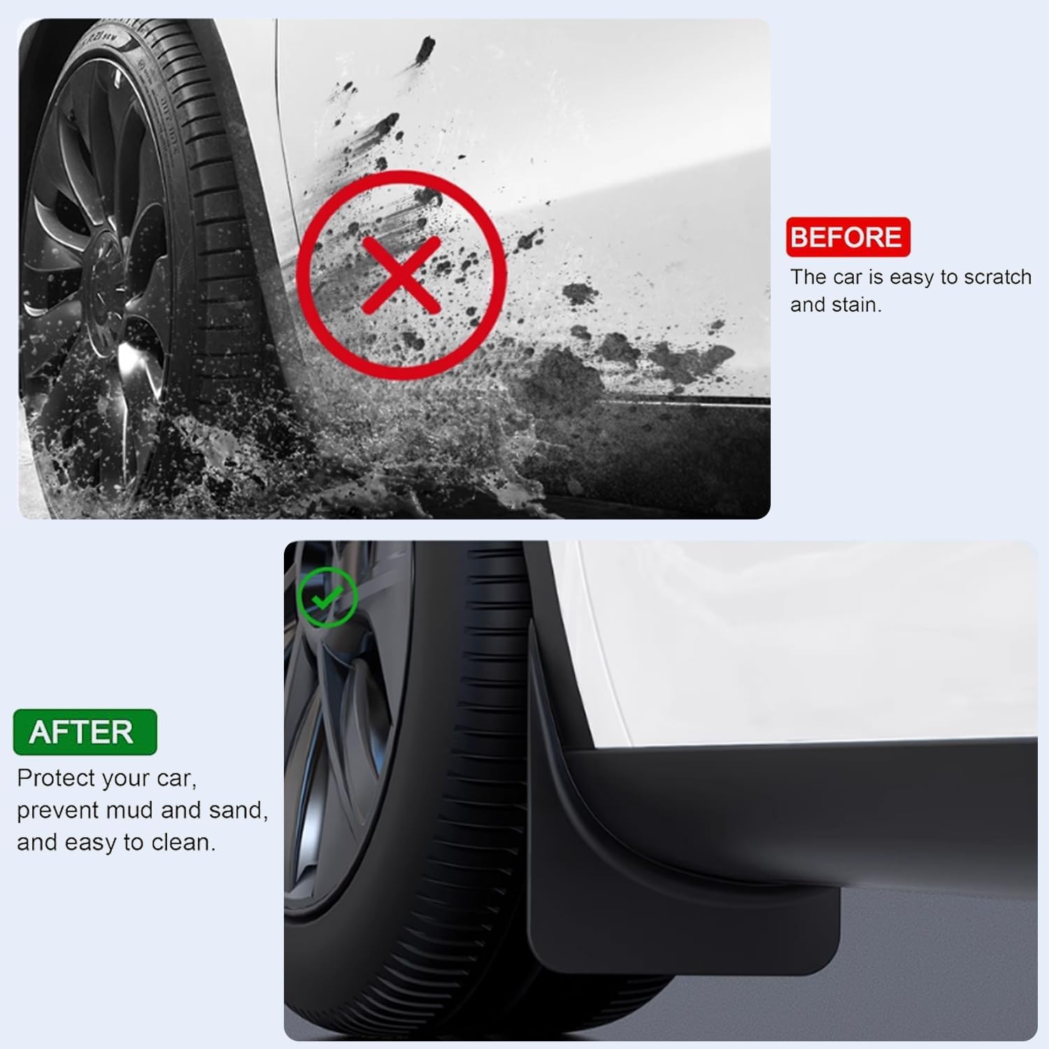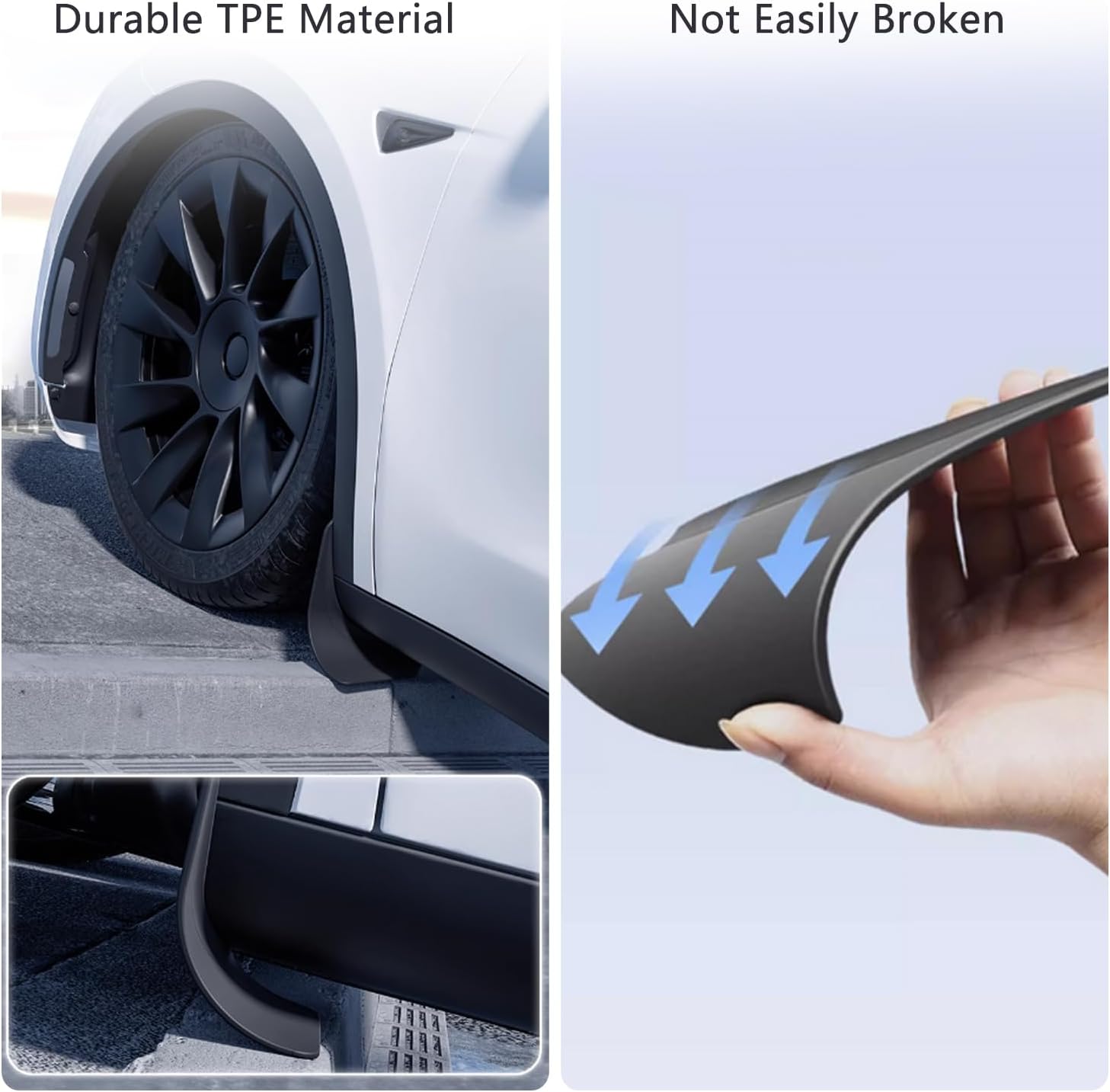 PRECISIÓN A MEDIDA PARA Tesla Model Y: este juego de cuatro guardabarros está meticulosamente diseñado para adaptarse perfectamente a la edición Tesla Model Y. Diseñados con precisión, estos guardabarros se integran perfectamente con su Model Y, elevando su atractivo visual y brindando protección de primer nivel.