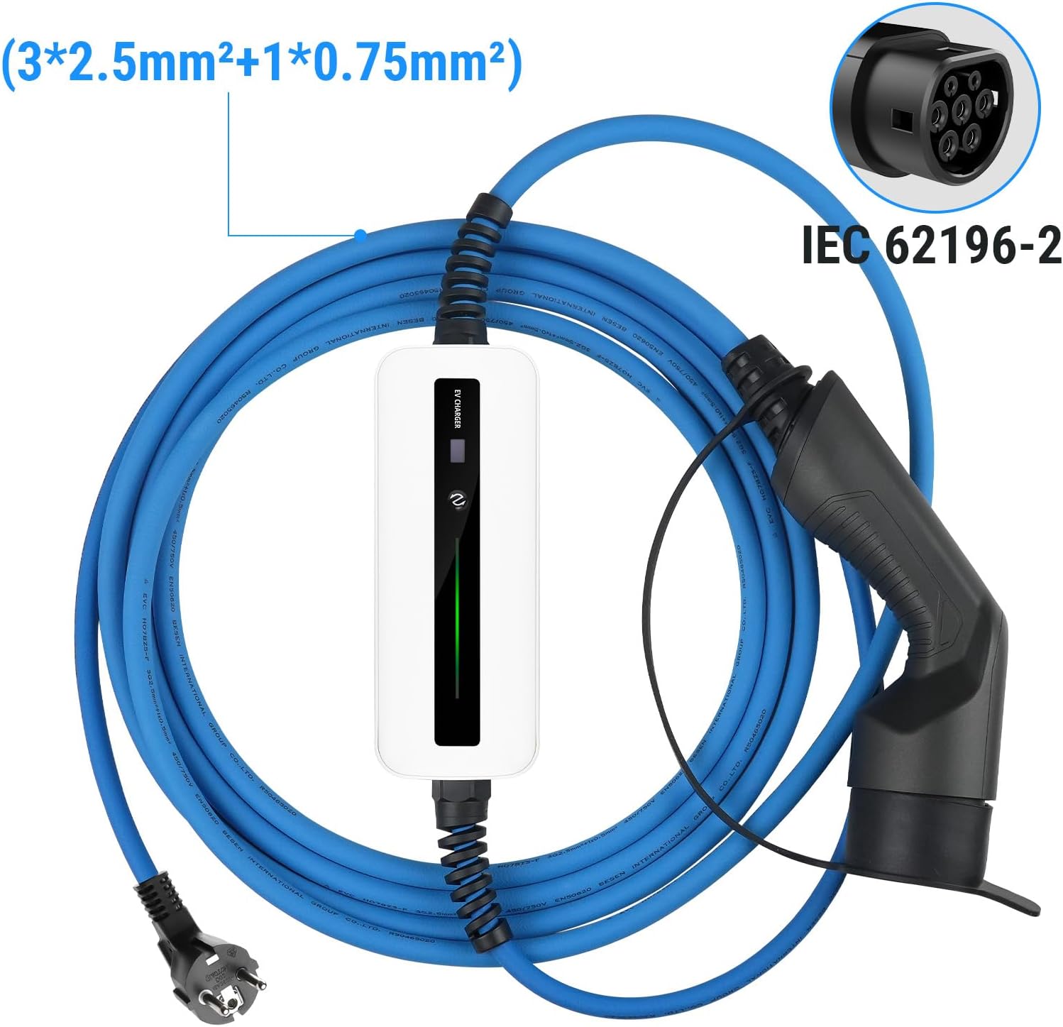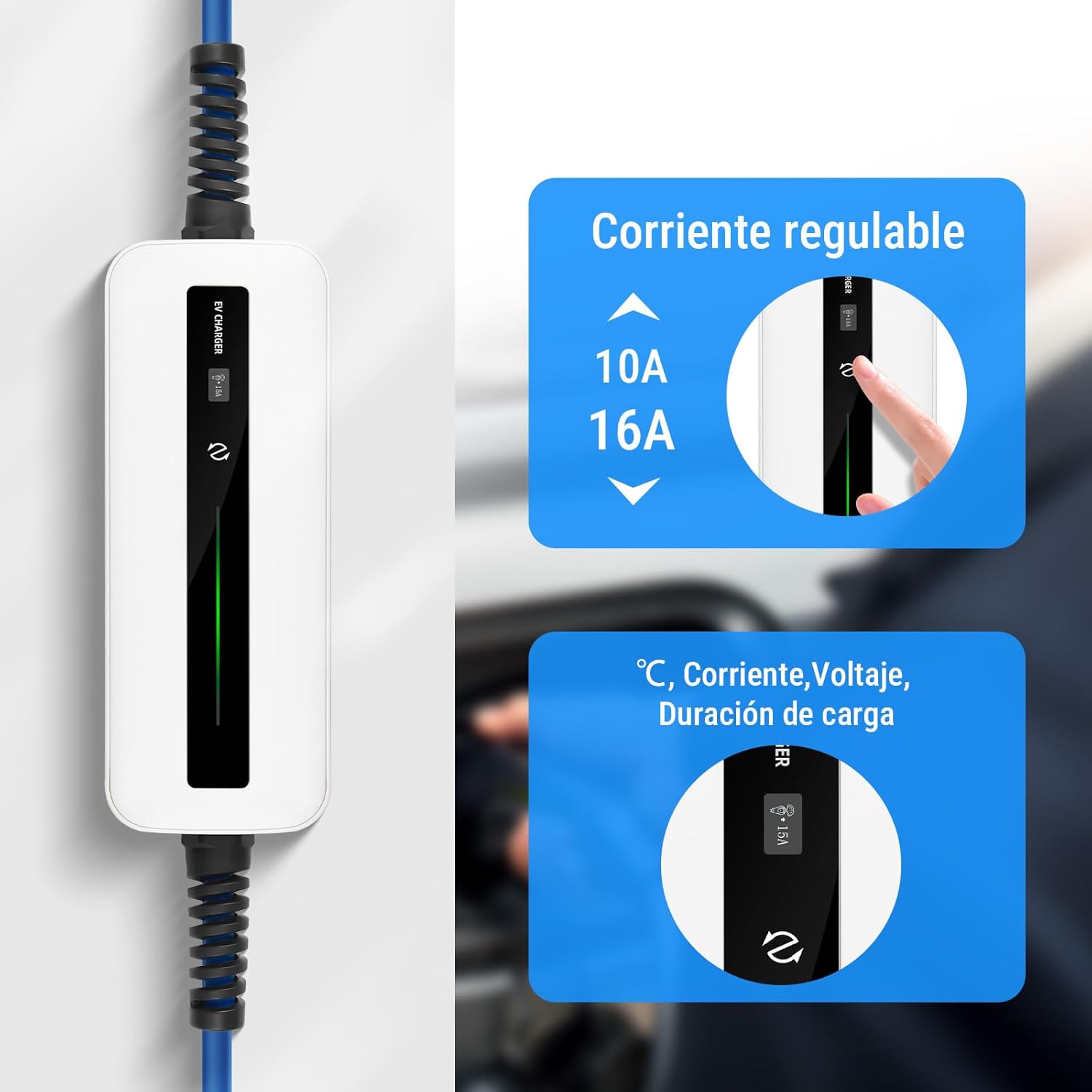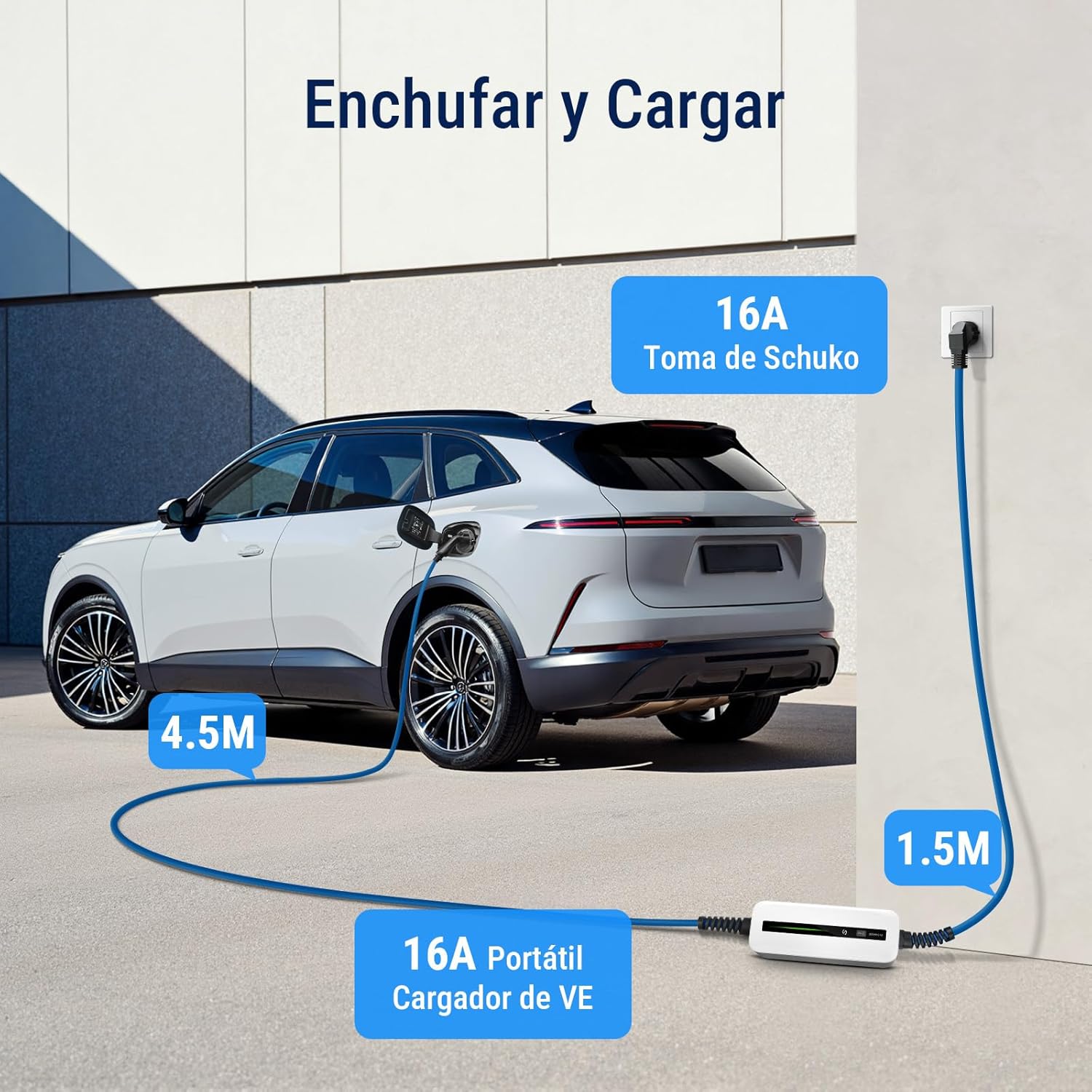 【Compatibilidad】El cargador EV (10/16A, 220-240V, 3,6kW) se puede utilizar en todos los vehículos eléctricos con entrada tipo 2 (estándar IEC 62196-2).