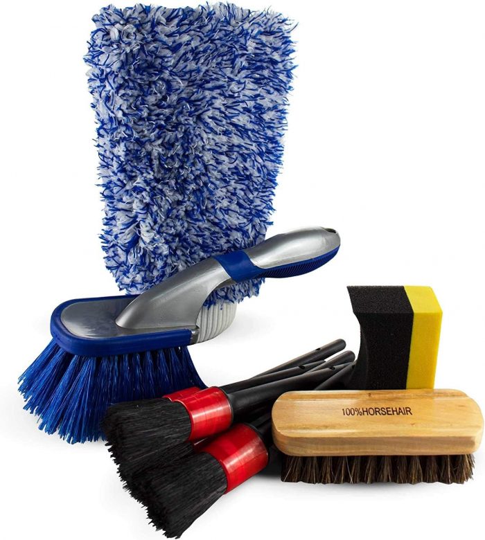 ✅ Microfibre Cloth Blue 70 x 30 cm ✅ Washing Mitt ✅ Sponge for Tires ✅ Brush for Tires ✅ Brush Leather and Alcantara ✅ Pack of 5 Brushes Detailing Pro ✅ Pack x 2 Sponges Manual Application ✅ Clay Bar 200g – Decontaminating Tablet ✅ Foamer (High Generator of High Quality Foam) ✅ Air freshener random smell.