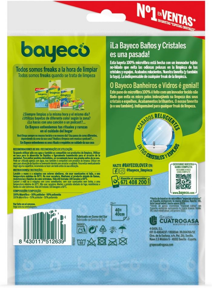 Sé el primero en valorar “Bayeco – Glass and bath cloth – Perfect solution for mirrors, glass and bathroom cleaning – Microfibre cloth with great absorption capacity – Leaves no marks and lint – 1 unit” Cancelar la respuesta