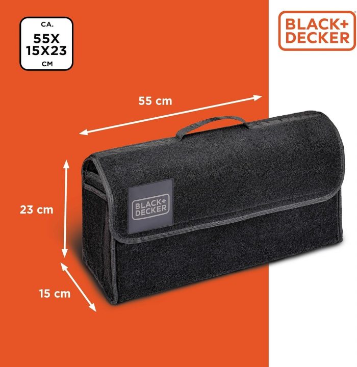 CAR TRUNK ORGANIZER – Avoid clutter in your trunk with this BLACK+DECKER organizer. The boot bag measures 55cm long, 15cm wide and 23cm high.