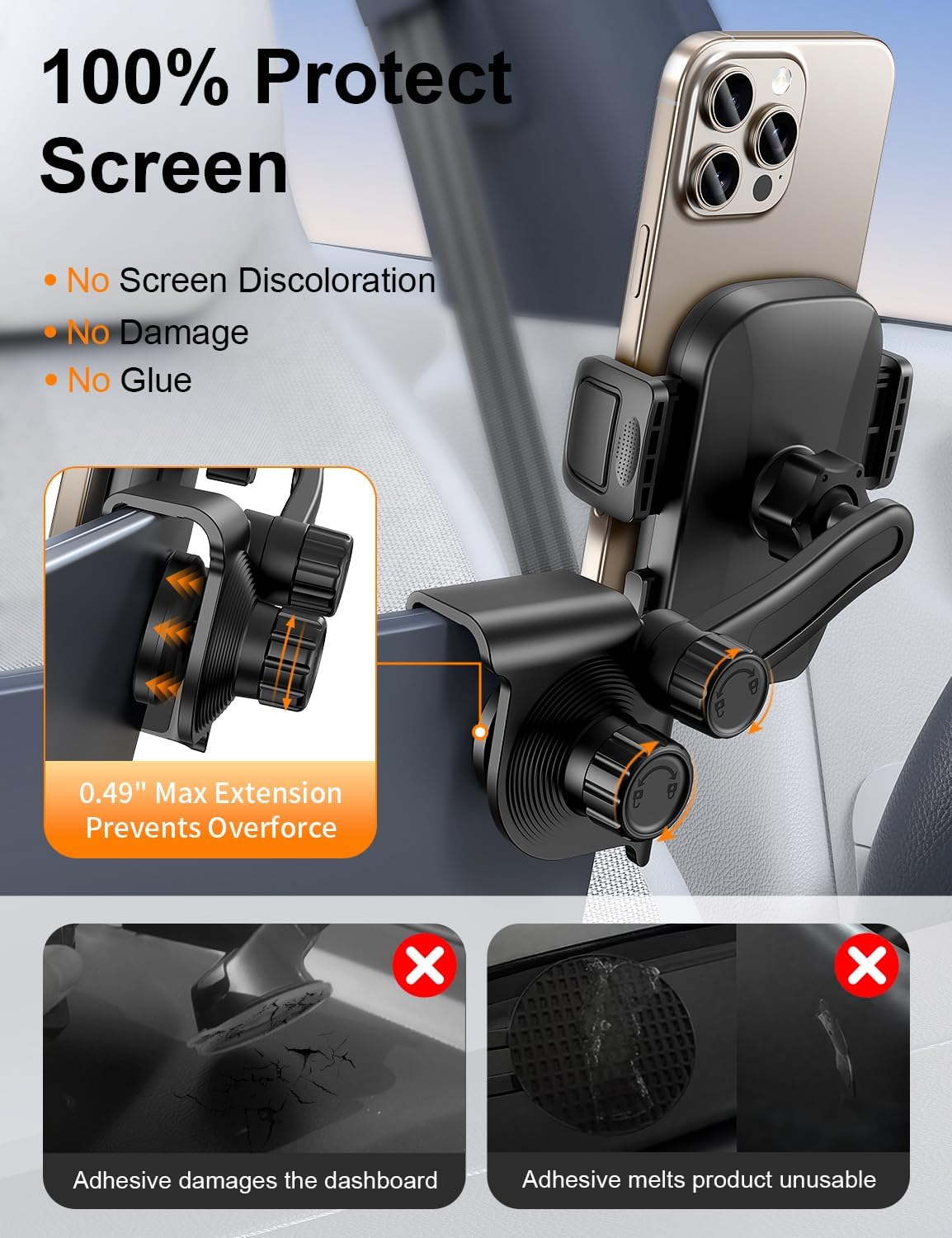 ANTI-SLIP SILICONE & SCREEN PROTECTION The part of the holder that touches the phone and the screen is made of high-quality non-slip silicone, which not only ensures that the phone will not slip, but also effectively prevents scratches or abrasions on the center screen, so that you can drive with more peace of mind.