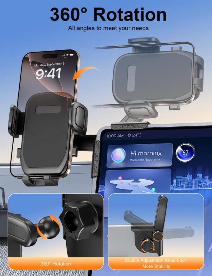 Tesla Phone Mount, Universal 360°Adjustable Accessories, Phone Mounts for Your Car for Tesla Model 3/Y/S/X/Cybertruck Display, Non-Adhesive for Car Phone Mount, Fits All Phones