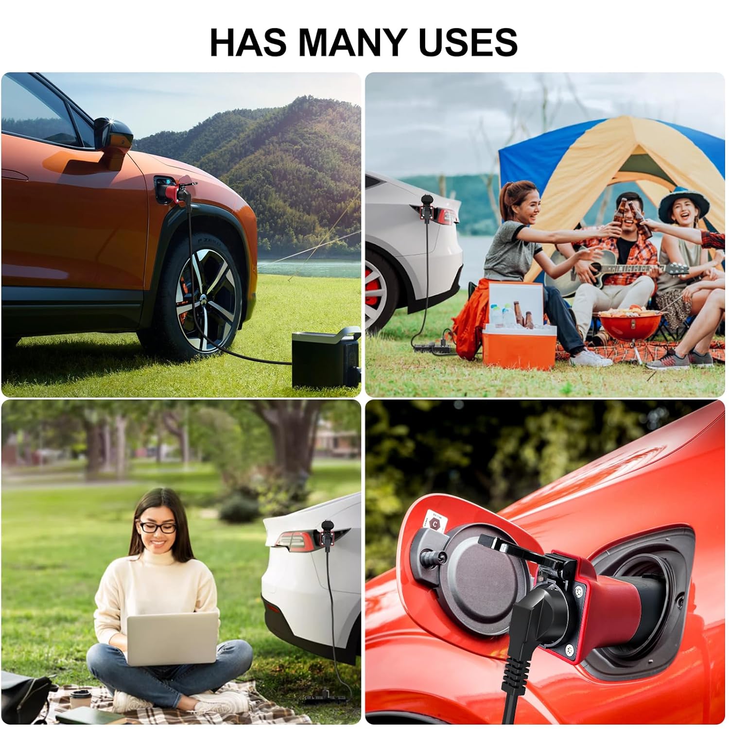 【Adaptador multipropósito】Este adaptador tipo 2 convierte el puerto de carga tipo 2 en un enchufe europeo estándar, lo que le permite alimentar varios dispositivos como parrillas, computadoras, proyectores, etc. durante actividades al aire libre o proporcionar energía cuando viaja o acampa.