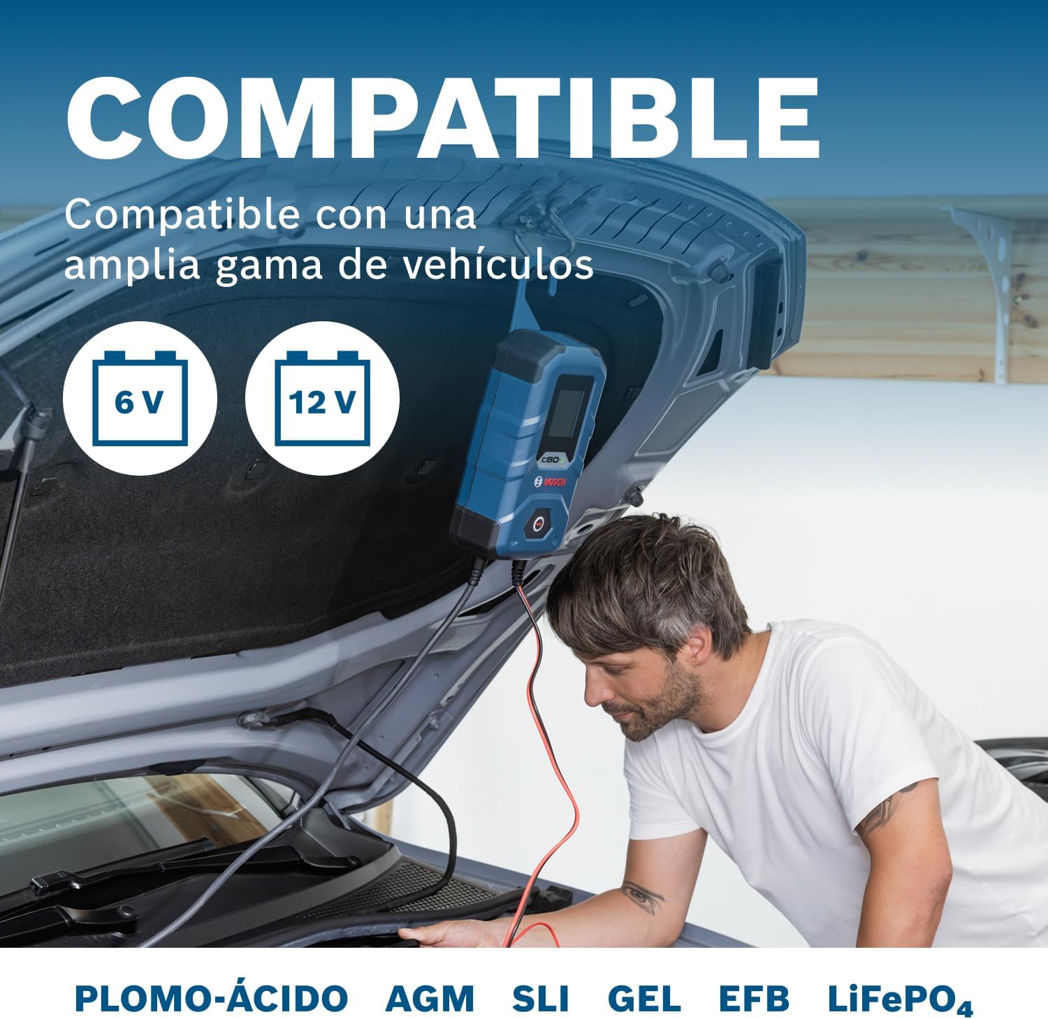 Compatibilidad: Carga baterías de litio de 12V (LiFePO4) y baterías de plomo de 6V/12V (AGM, EFB, GEL, SLI) desde 2Ah hasta 400Ah para coches, scooters, motos, furgonetas, autocaravanas, etc.