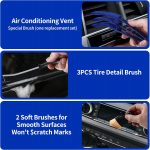 Multi-size detailing brush: mix of bristles and microfiber material, suitable for cleaning car vents, dashboards, seat crevices and other hard-to-reach areas, no damage to surfaces, wet and dry