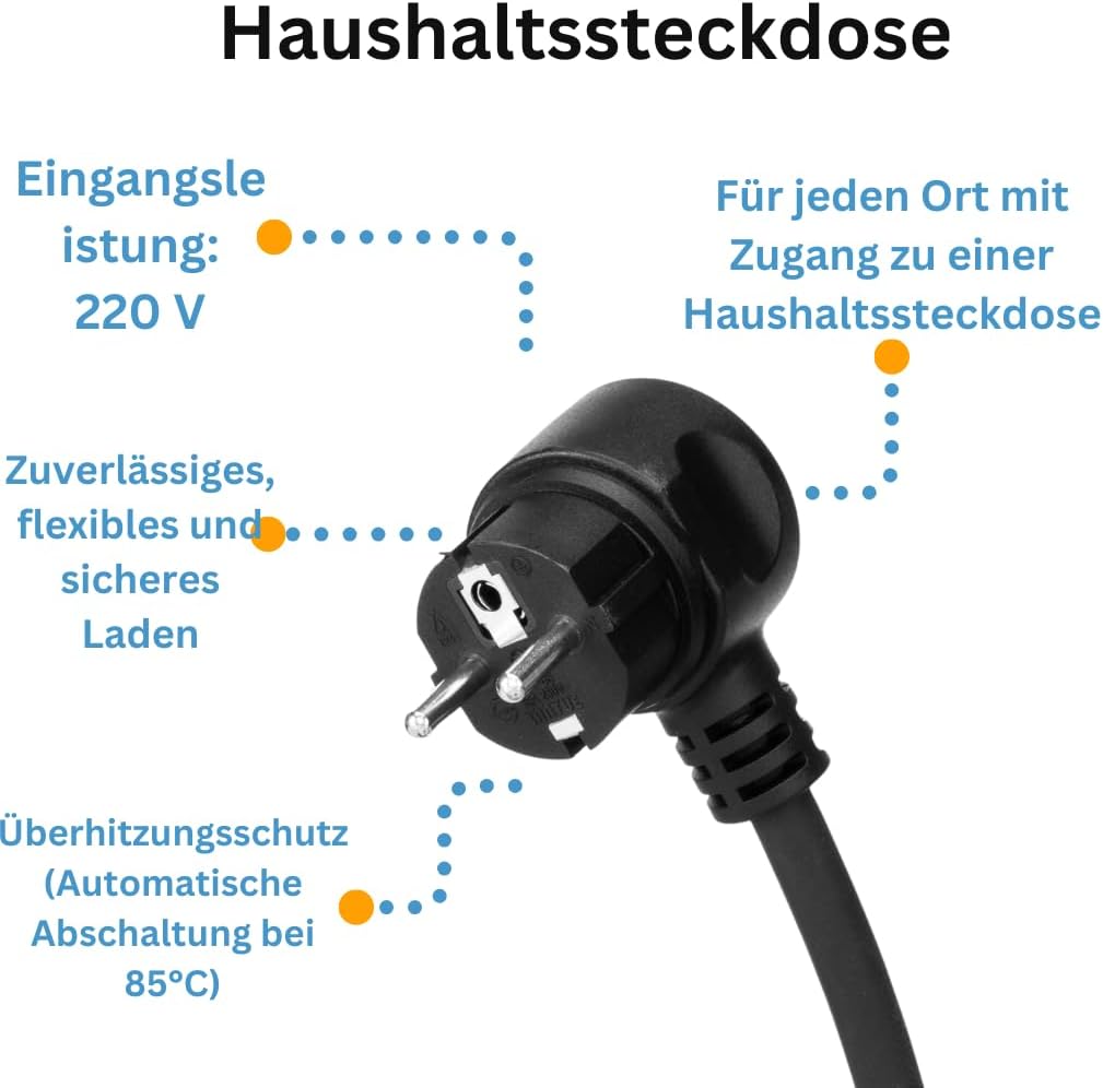Este cable de carga portátil y compacto es fácil de transportar e ideal para cargar en casa, en el trabajo o mientras viaja. Está equipado con características de seguridad como protección contra sobretensiones, protección contra sobrecargas, protección contra rayos y protección contra sobrecalentamiento. Cuando la temperatura supera los 85 ℃, la carga se detendrá automáticamente y continuará una vez que la temperatura haya alcanzado un nivel seguro.