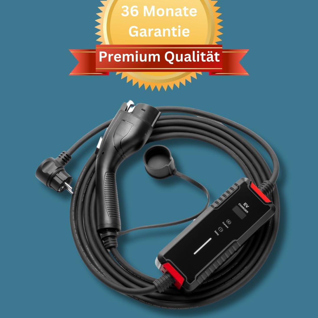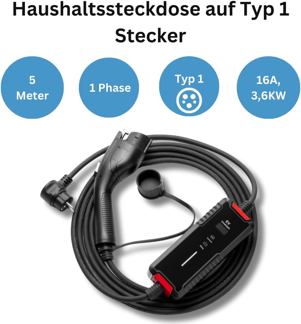 Cargador de Coche Eléctrico EVIEUN, 3,6 kW 6-16A 5 Metros Cargador EV Tipo 2 con Enchufe Schuko | Controlable con ID.3/ID.4, Modelo 3/Y, ZOE, e-208, Spring y otros BEV/PHEV | CEI 62196-2