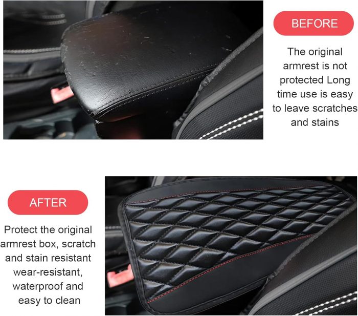 HIGH QUALITY: This armrest box mat is made of high quality PU leather material, soft and breathable, wear-resistant and durable, waterproof and dustproof, can effectively protect the armrest box from scratches, drinks and long time irradiation aging, and can be used in all seasons.