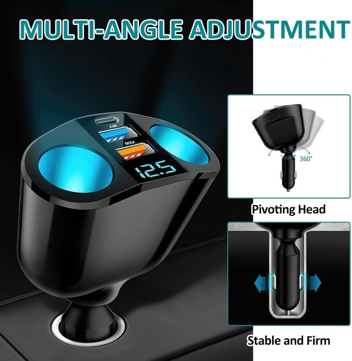 【Multi-Device Compatibility】This car charger adapter allows simultaneous charging of up to three devices, such as smartphones, tablets, laptops and game consoles. The 360 degree flexible rotation feature allows the angle to be adjusted for optimal use, providing added comfort and accessibility for all passengers in the vehicle.