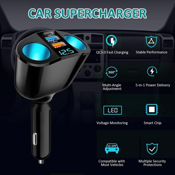 【Enhanced Safety and Functionality】This multi-socket car cigarette lighter adapter not only powers your devices, but also includes a LED voltmeter to monitor the voltage of the car battery. The high-quality construction and intelligent IC technology offer overload, overheating, and short circuit protection, making it a reliable choice for all your in-car charging needs.