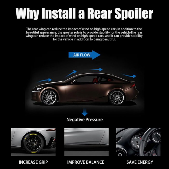 【Superior Performance】 The spoiler can increase aerodynamic force and stability by using airflow, can improve the traction of the rear tires and improve fuel efficiency. Make the driver feel more comfortable at high speeds, also make your car more sporty and stylish, bring new visual enjoyment.