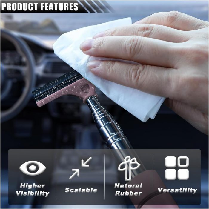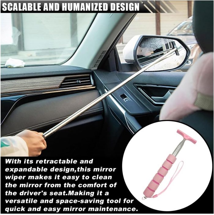 -The mirror wiper features an extendable design for easy reach even from the driver’s seat, guaranteeing a clear view by wiping away water from rearview mirrors with ease.