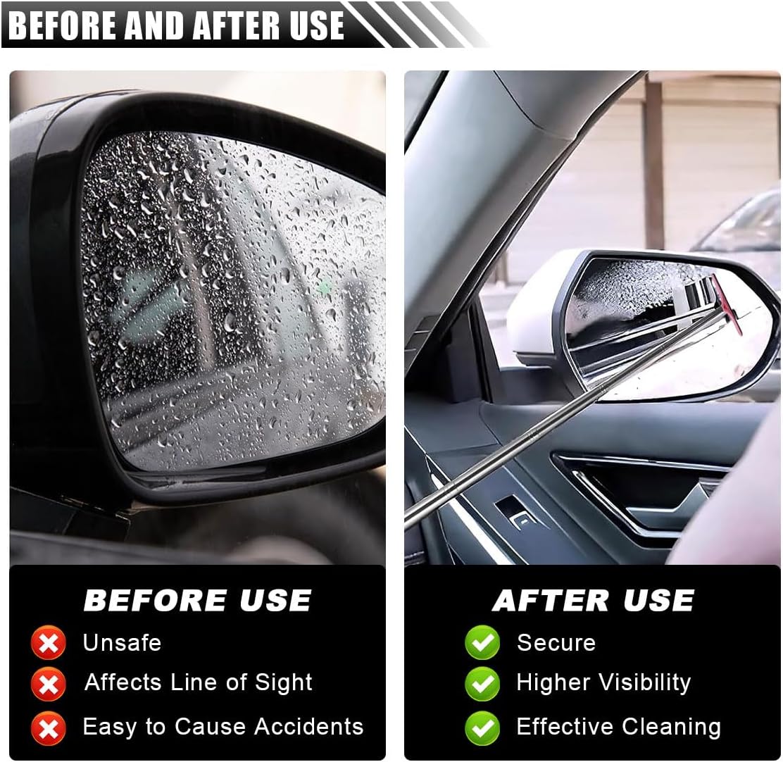 【Enhanced Visibility and Safety】: Enjoy crystal-clear mirrors for safe driving in any weather condition. The layered brush head design ensures thorough cleaning without scratching, removing water, fog, dirt, and dust effectively.