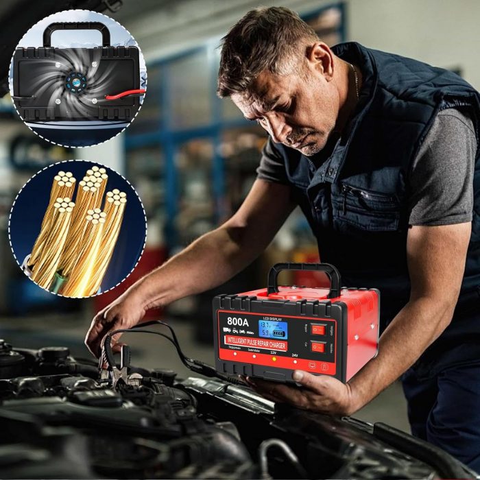 Cargador de Batería para Automóvil – Cargador Inteligente De Batería para Vehículo | Mantenedor Inteligente 12V24V para Carga Rápida, Reparación Automotriz y Mantenimiento de Vehículos en Viajes