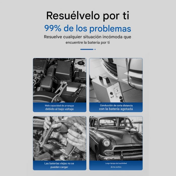 Carga Automática Inteligente: Chip inteligente detecta el estado de la batería y ajusta automáticamente parámetros de carga para máximo rendimiento, sin intervención manual. Proceso de inicio/parada sencillo que elimina supervisión constante.