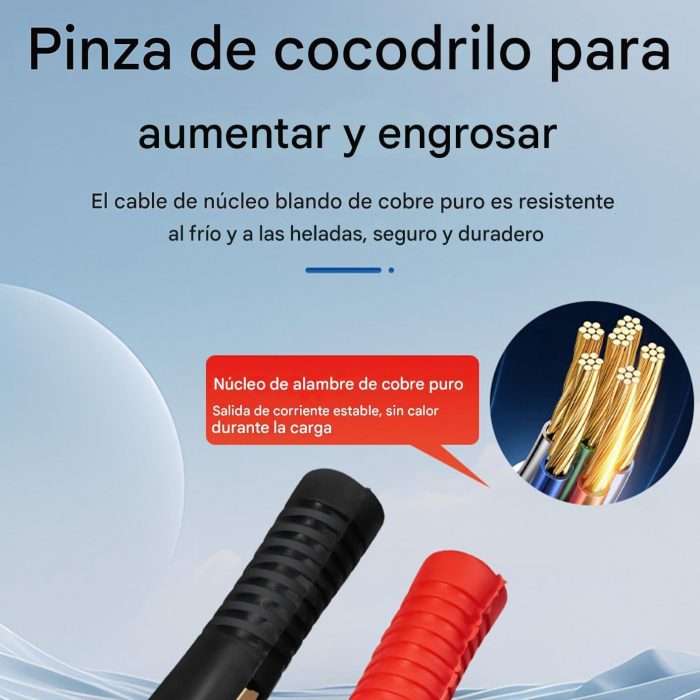 Pinzas Robustas:Pinzas de cobre puro extra gruesas garantizan conducción estable, cables reforzados con núcleo de doble aislamiento mejoran seguridad y durabilidad durante la carga de baterías de coche