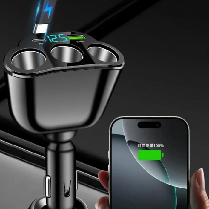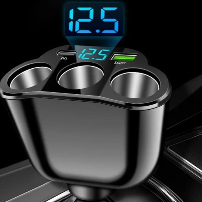 Cargador de coche 5 en 1 con funcionalidad multipuerto, pantalla digital y capacidades de carga rápida