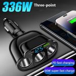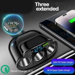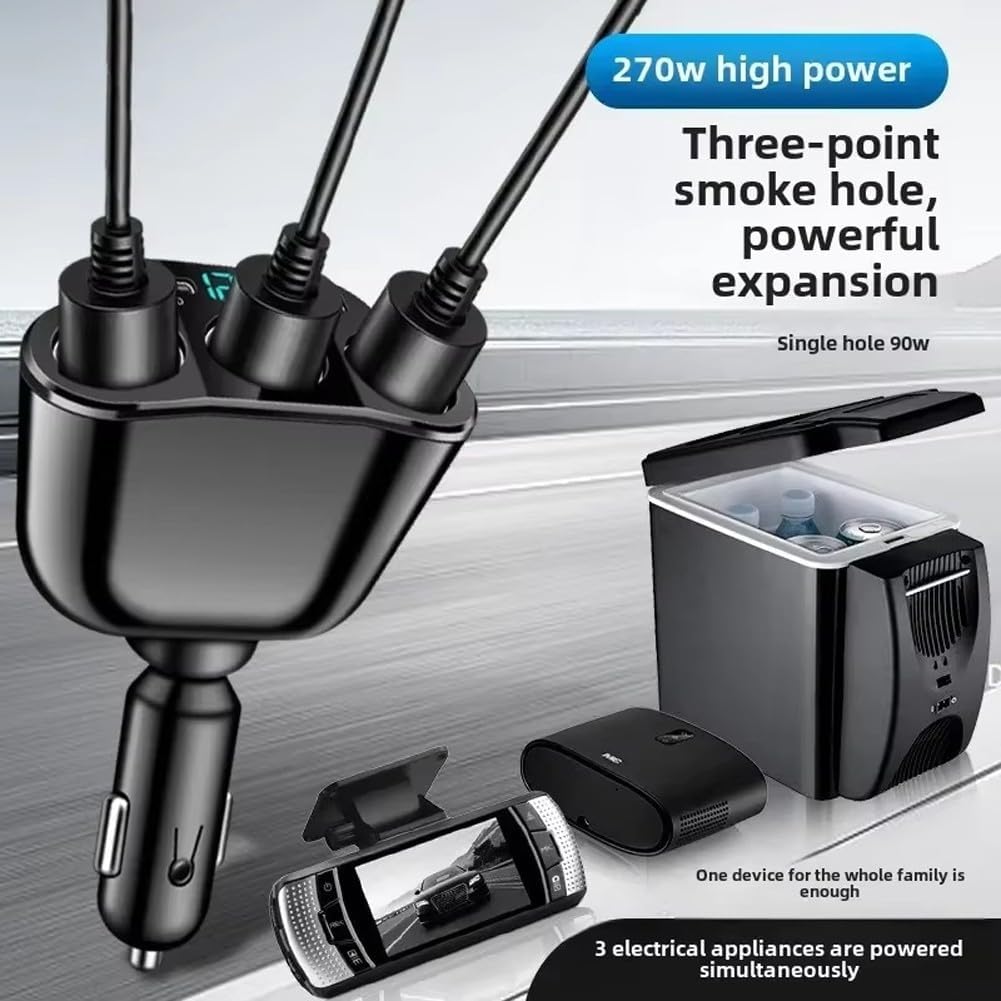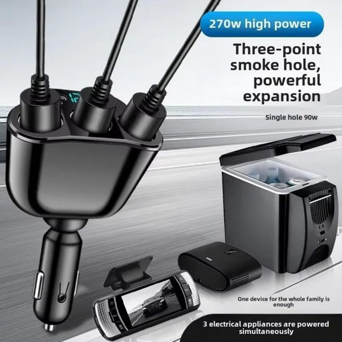Diseño de cargador multifuncional: el cargador de coche 5 en 1 viene equipado con cinco puertos, incluyendo una potente salida USB de 66 W y tres enchufes adicionales para cargar varios dispositivos a la vez de manera eficiente.