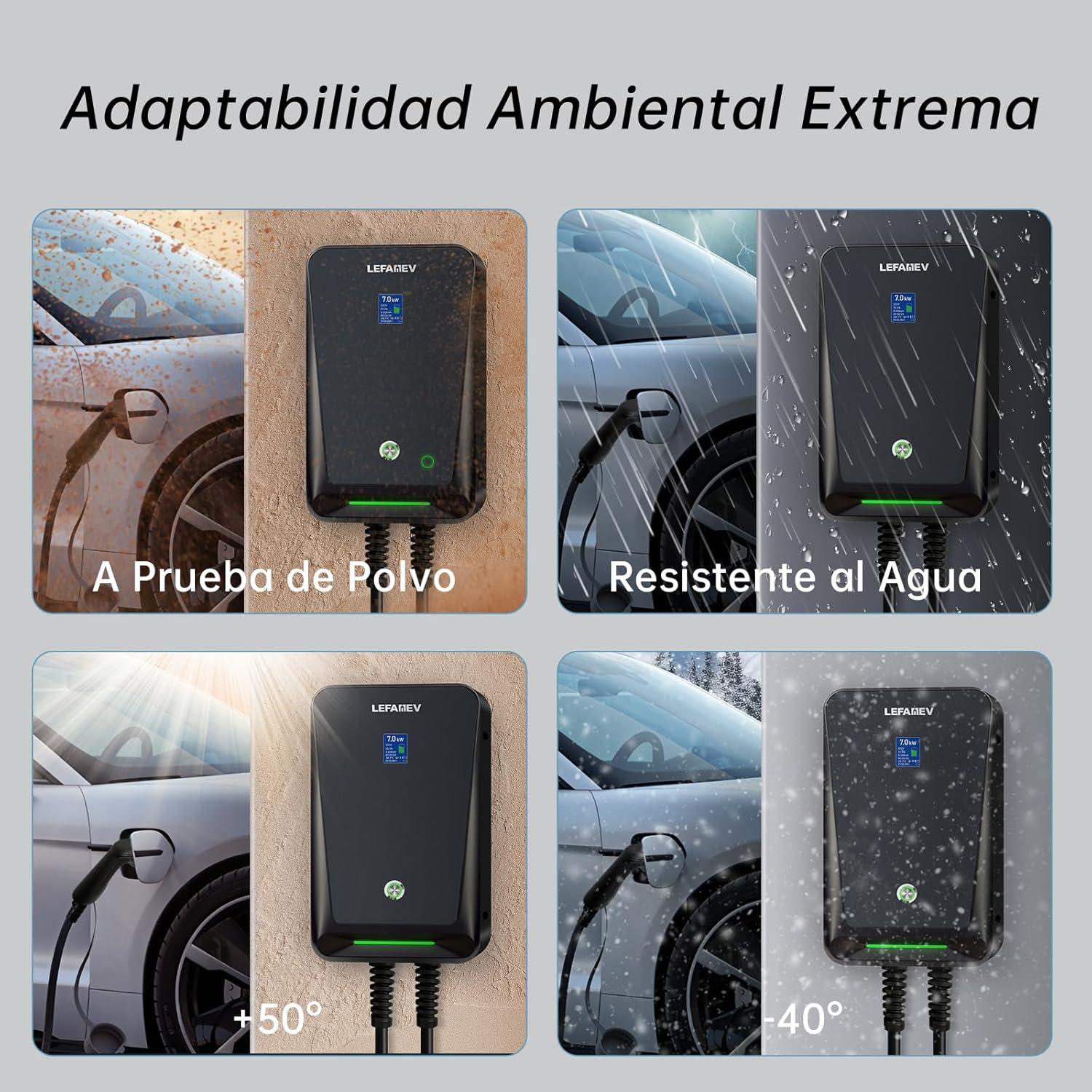 【Potencia máxima 7,68 kW | monofásico 32A】 Cargador de pared monofásico 32A, que ofrece una potencia máxima de 7,68 kW para cargar rápidamente tu vehículo eléctrico. Compatible con IEC 62196-2 (Tipo 2), apto para la mayoría de vehículos europeos.