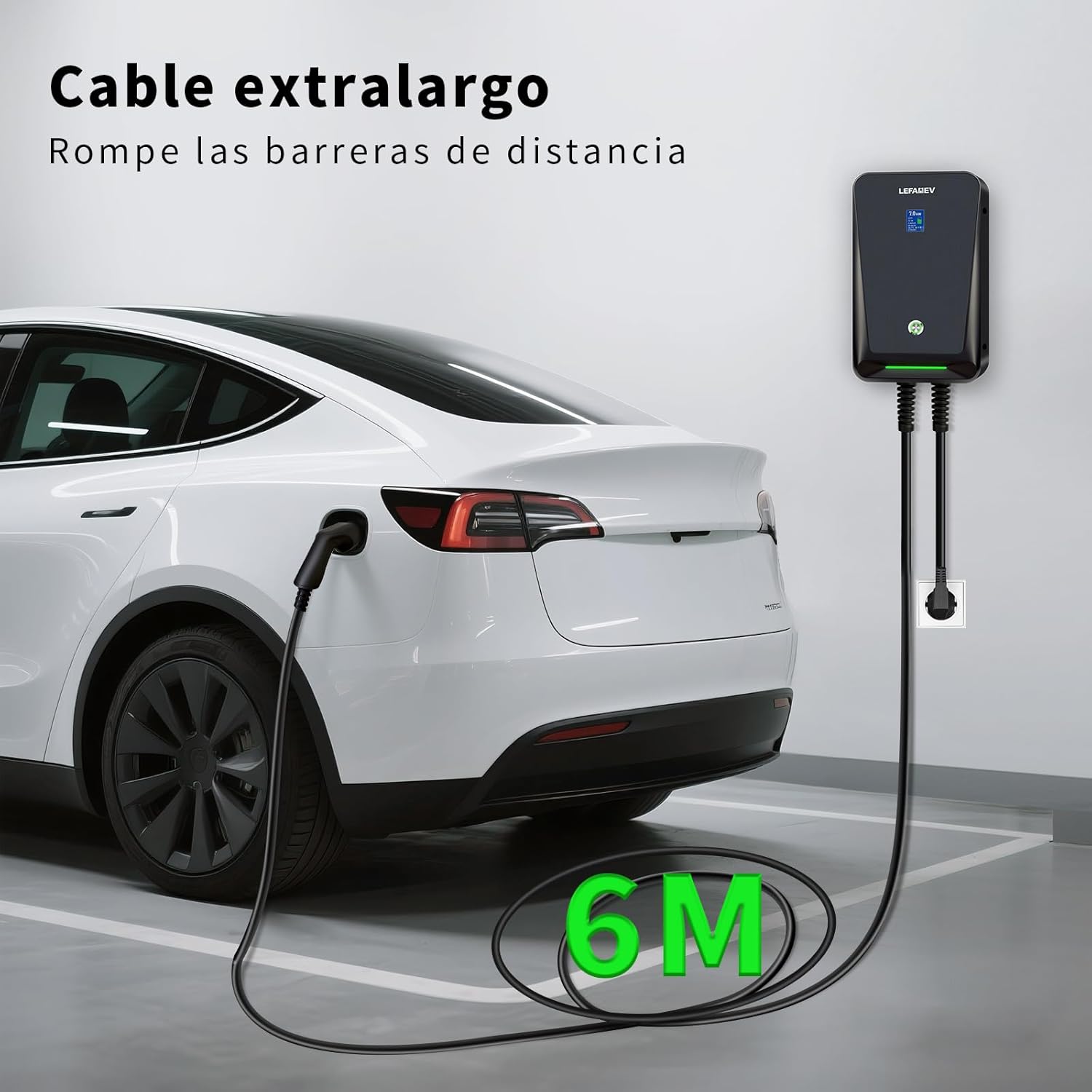 【CABLE DE 6M DE LARGO + PANTALLA LCD INDUSTRIAL】- Cable de cobre puro ultralargo de 6m para mayor flexibilidad. La pantalla LCD muestra los datos de carga (voltaje, intensidad, duración, potencia) en tiempo real.
