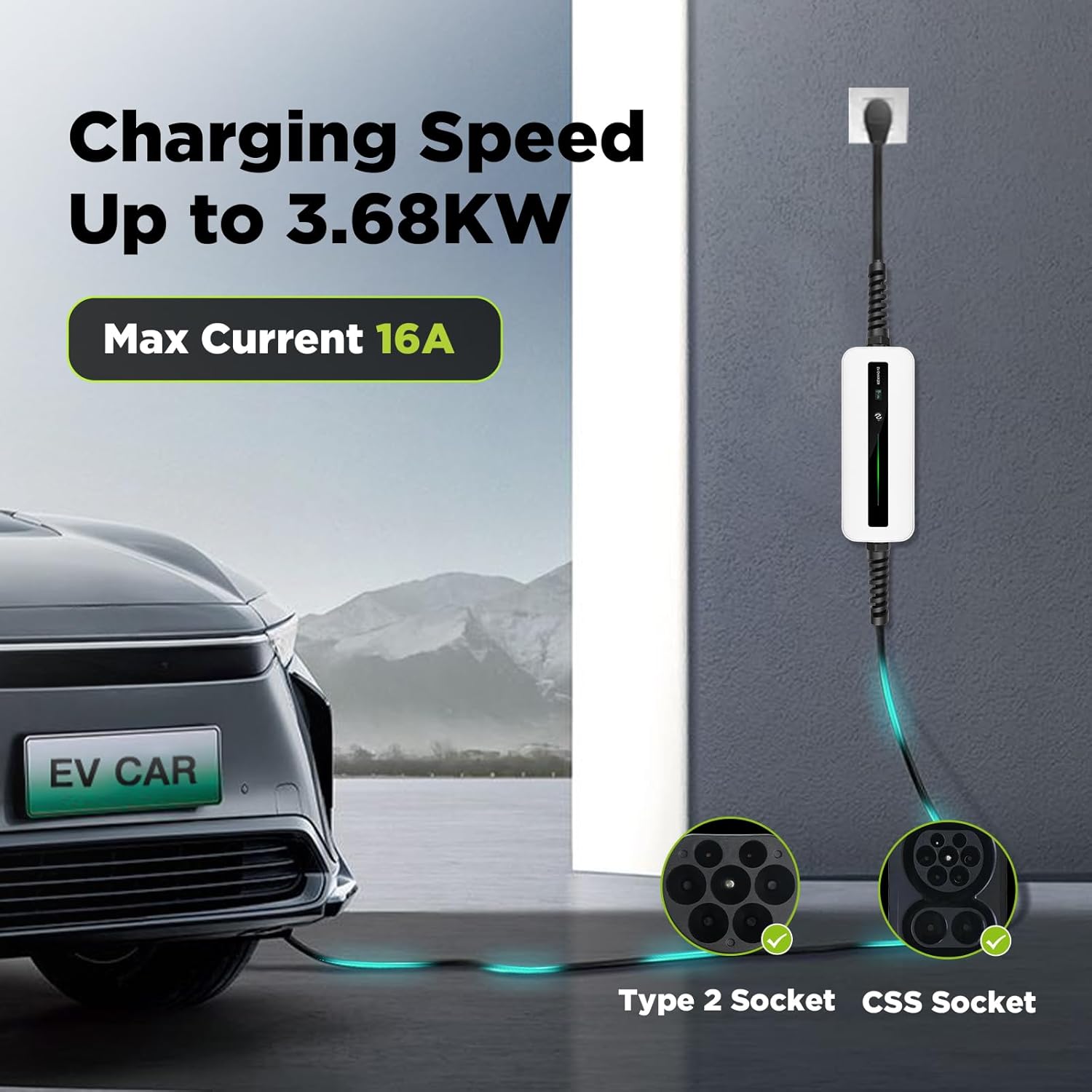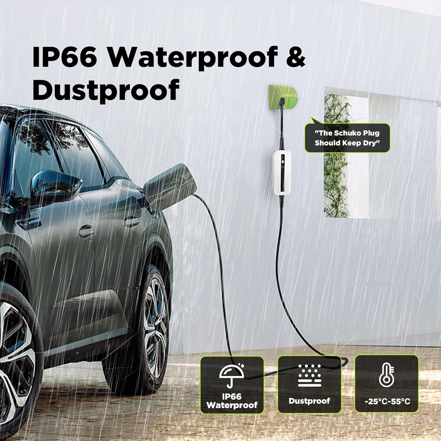(PORTÁTIL Y FÁCIL DE OPERAR) Un cable muy largo de 6 m puede satisfacer sus necesidades de carga diarias. Cuando viajas y visitas a familiares y amigos, no tienes que preocuparte por cargarlo, ya que se puede llevar con el coche. Muy conveniente, solo necesita un enchufe Schuko de 2 pines (enchufe europeo)