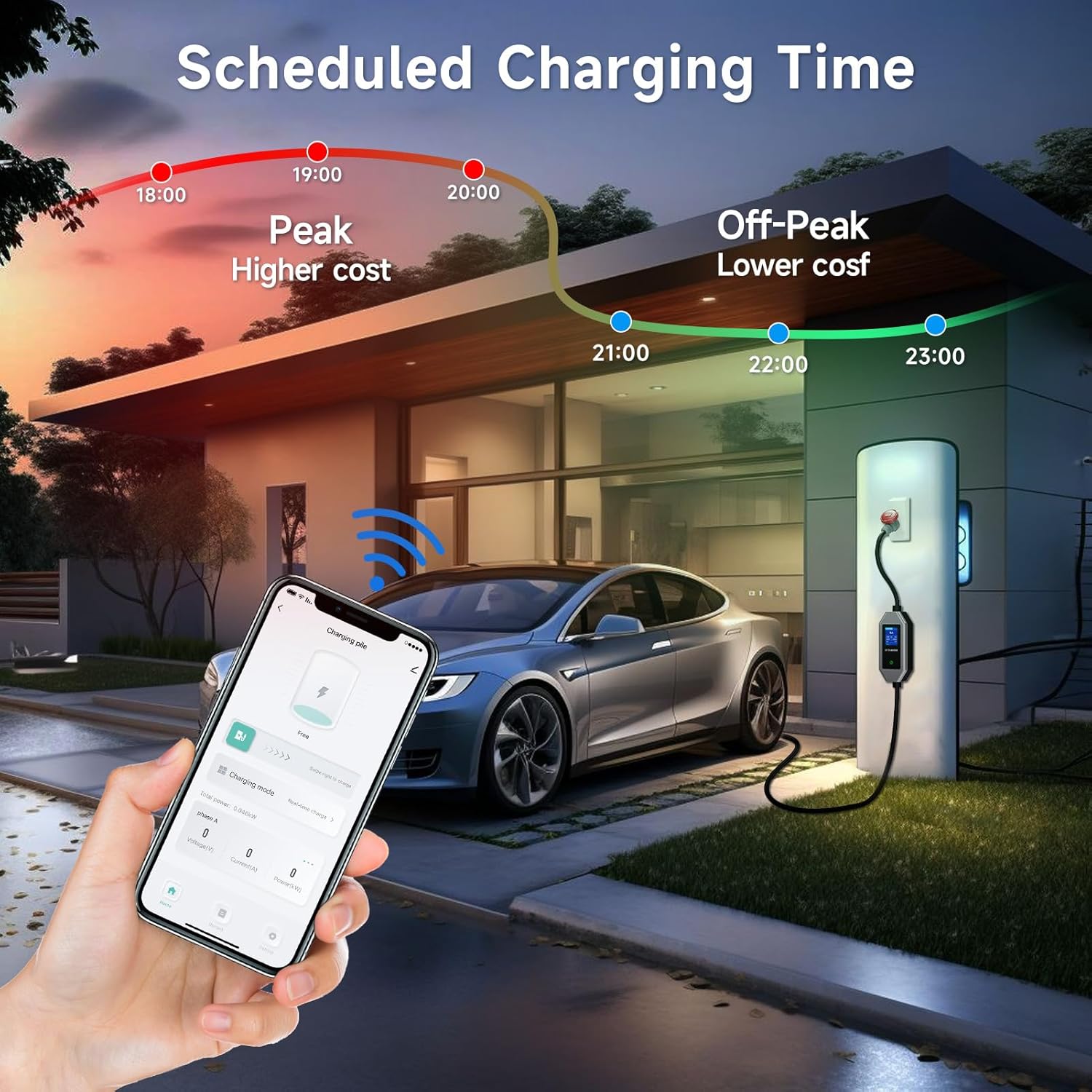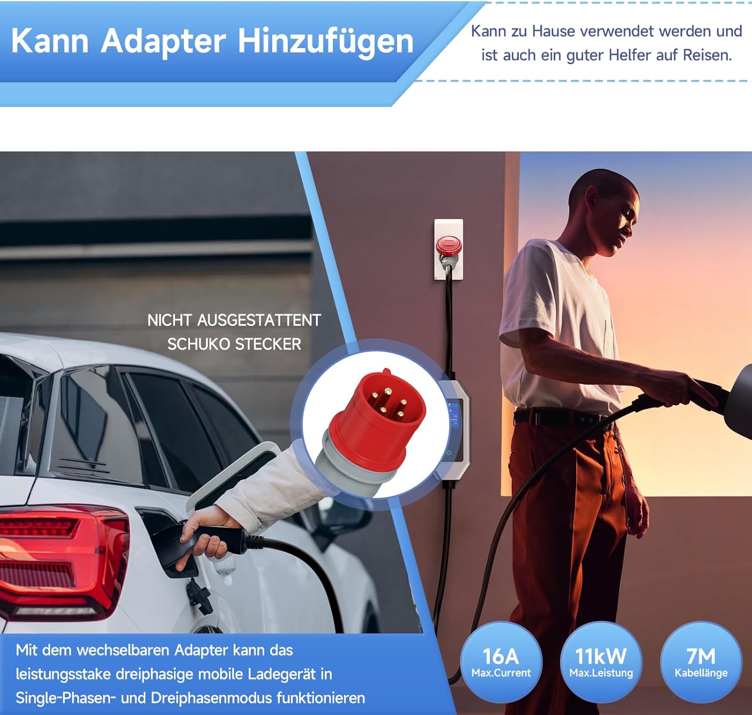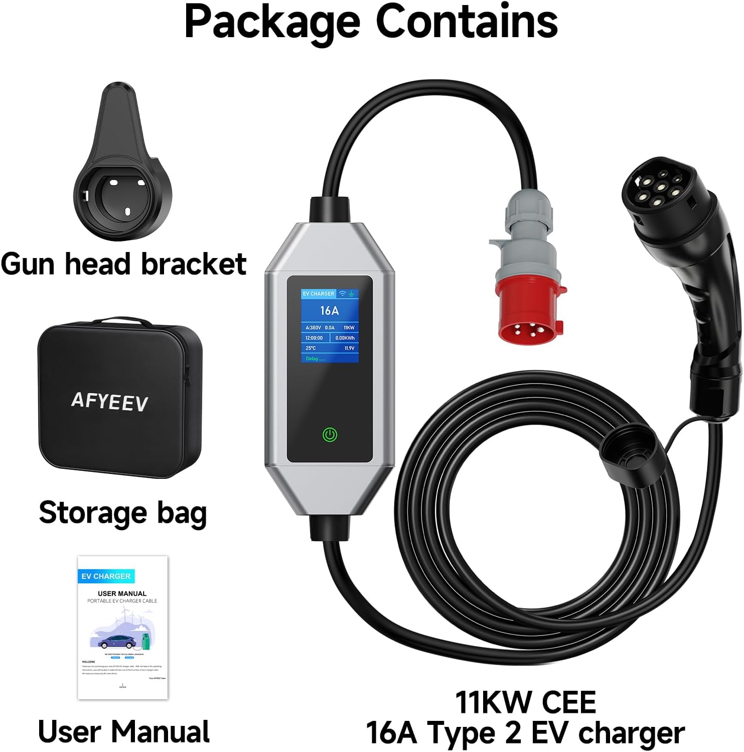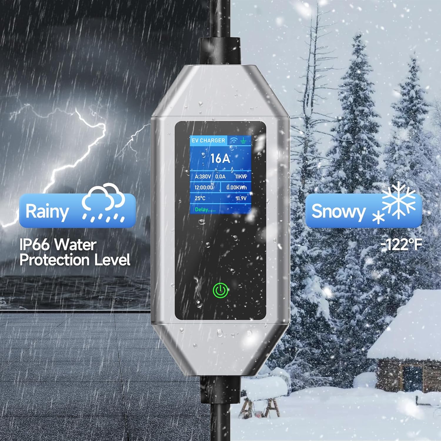 CARGA RÁPIDA: esta caja de pared móvil de 11 kW tiene una configuración de corriente ajustable de 6/8/10/13/16 A, un voltaje de carga de 200-250 V y una potencia de salida máxima de hasta 11 kW. Se puede cargar de forma rápida y energéticamente eficiente.