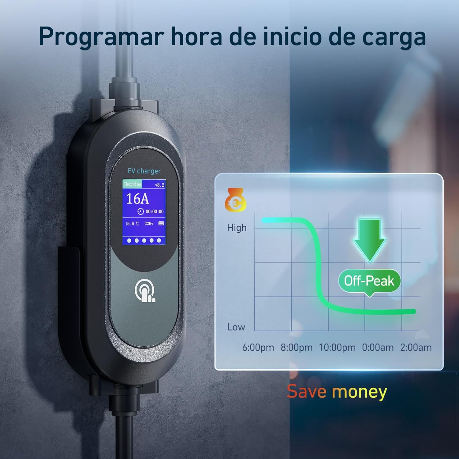 【Carga con retraso de 12 horas】: el cable de carga para automóvil eléctrico puede ajustar el tiempo de carga de acuerdo con sus necesidades personales. Al seleccionar la función de retraso, el modo de carga se puede retrasar 2/4/6/8/10/12 horas, lo que le permite cargar horas extras y ahorrar en sus facturas de electricidad.
