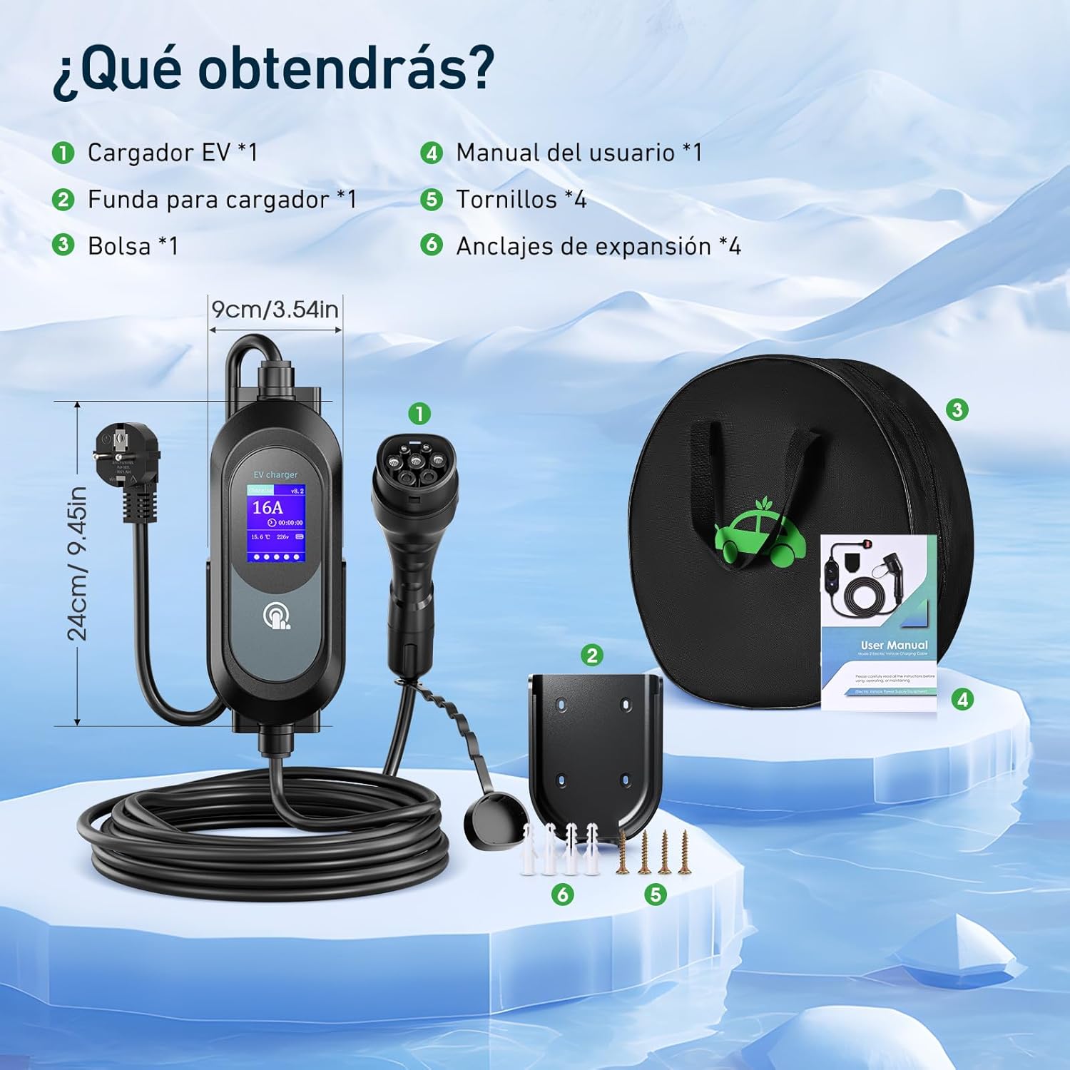 【Corriente ajustable y carga rápida】: el cargador de coche eléctrico tipo 2 se puede ajustar a 8 A/10 A/13 A/16 A, la corriente máxima del cargador de vehículo eléctrico se ajusta a 16 A y la potencia de salida puede alcanzar 3,68 kW. Con una pantalla grande de 2,4 pulgadas, que te permite conocer el estado de carga con mayor claridad.