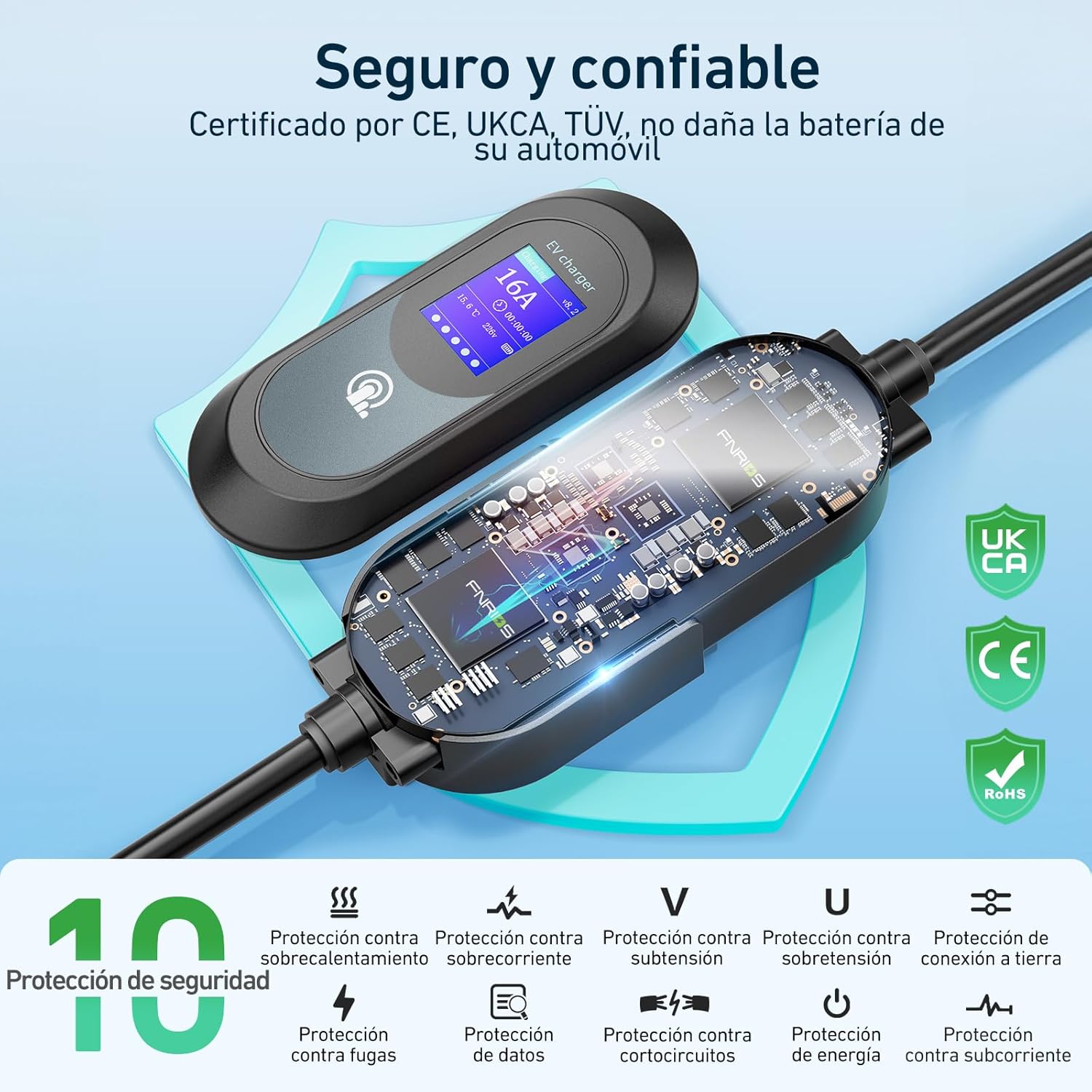 No lo guarde en un ambiente húmedo, no lo exponga a la luz solar, desenchufe el dispositivo durante el tiempo que no esté cargando y el enchufe del hogar debe admitir una corriente superior a 16A.