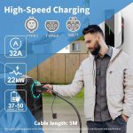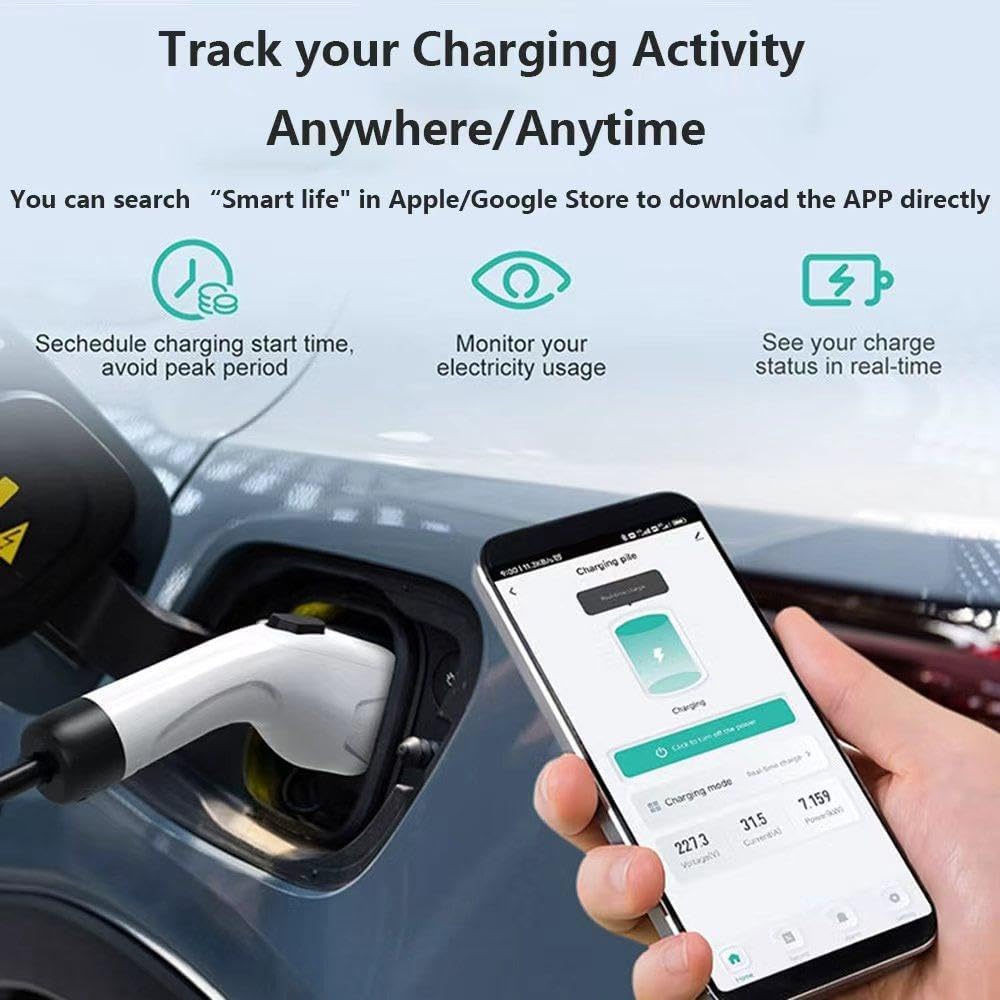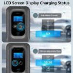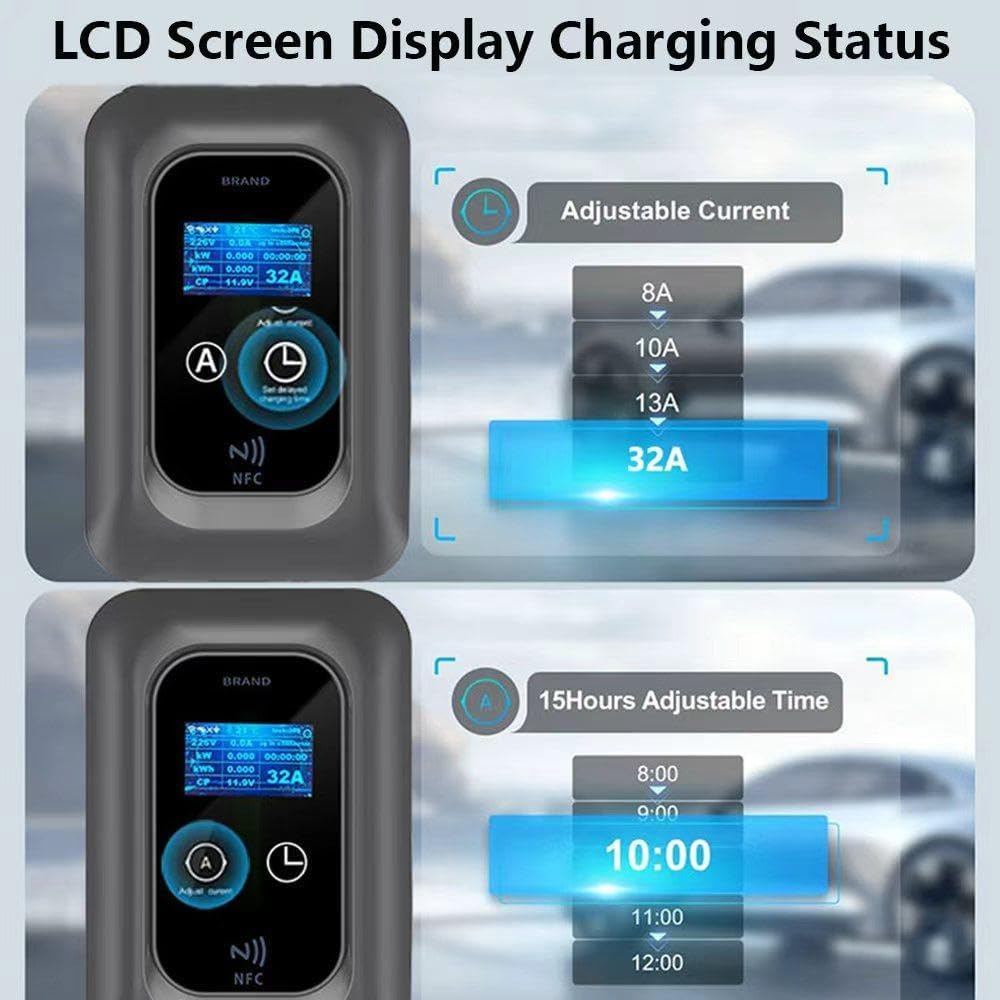 【Carga Ajustable】Este cargador para vehículos eléctricos admite una carga rápida de 7 KW, lo que agiliza la carga de tu vehículo eléctrico. Corriente ajustable de 8 velocidades (6a/8a/10a/13a/16a/20a/24a/32a) para satisfacer las necesidades de diferentes modelos. La carga inteligente con cita previa de 1 a 15 horas, optimiza el consumo eléctrico y permite iniciar la carga en periodos de baja demanda para reducir costes.