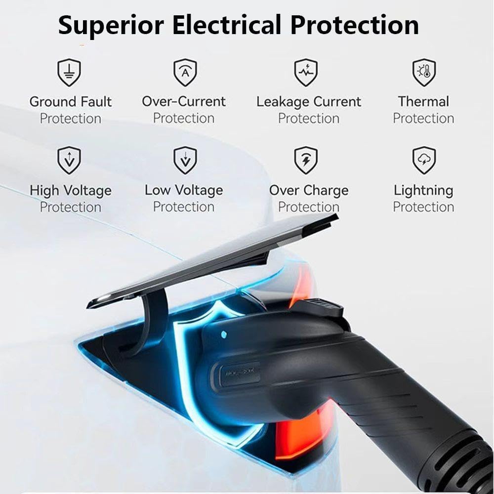 【Seguridad y confiabilidad】 La seguridad es nuestra principal prioridad al cargar vehículos eléctricos. Funciona a temperaturas de -30 °C a +80 °C, lo que lo hace resistente a entornos de carga exigentes. Es tu mejor opción para cargar. Tiene características de seguridad avanzadas como protección contra sobrecorriente, sobretensión, sobrecalentamiento y cortocircuito.