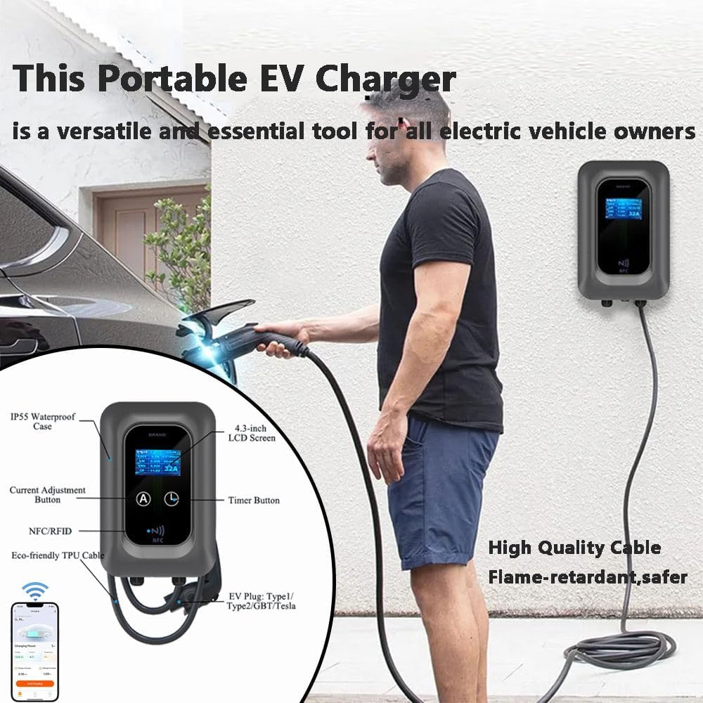 Cargador portátil para vehículo eléctrico, estación de carga rápida de 7KW y 32A, Wallbox para el hogar, pantalla Digital, Cable de corriente ajustable de 5M
