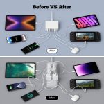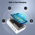 【Estación de carga portátil 6 en 1】Diga adiós a llevar consigo varios cargadores viejos y voluminosos porque el cargador USB de 6 puertos le brinda una experiencia de carga incomparable. Este cargador de escritorio es compacto y ocupa poco espacio. Gracias al cable de alimentación extraíble, puedes usarlo fácilmente en casa, en el escritorio, en la mesita de noche, en la oficina, cuando viajas y en la mayoría de los otros lugares.