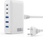 108W Cargador USB C Múltiple, 6 Puertos GAN USB C Cargador Portátil 20W Portátil Adaptador Cargador