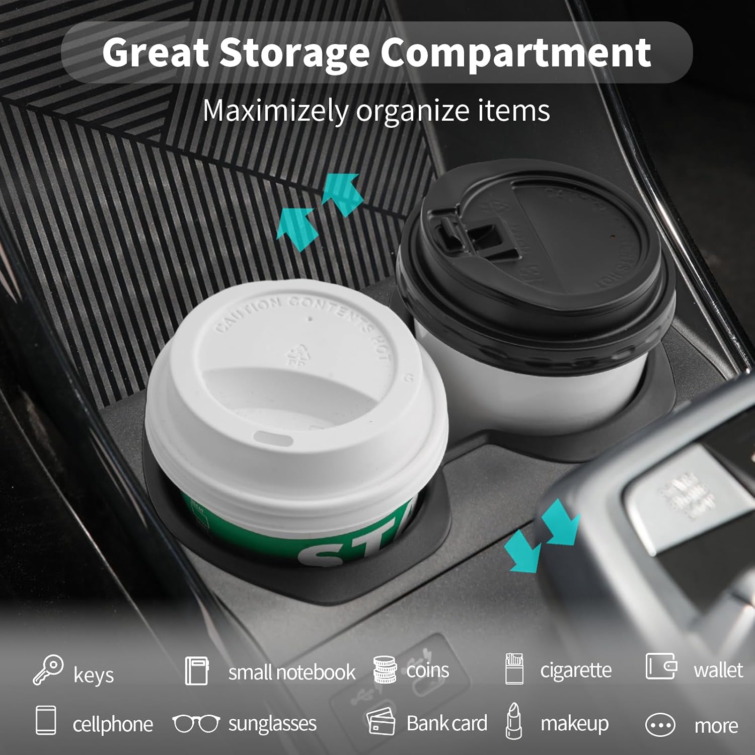 This cup holder insert is extremely versatile and perfect for holding common beverage containers such as small coffee cups, lemonade glasses and more. Its smart design effectively prevents the spill of drinks during acceleration, keeping your original cup holder clean. This does not affect the soft close of the new X1 IX1 center console at all, making this cup holder insert a perfect addition to your vehicle.