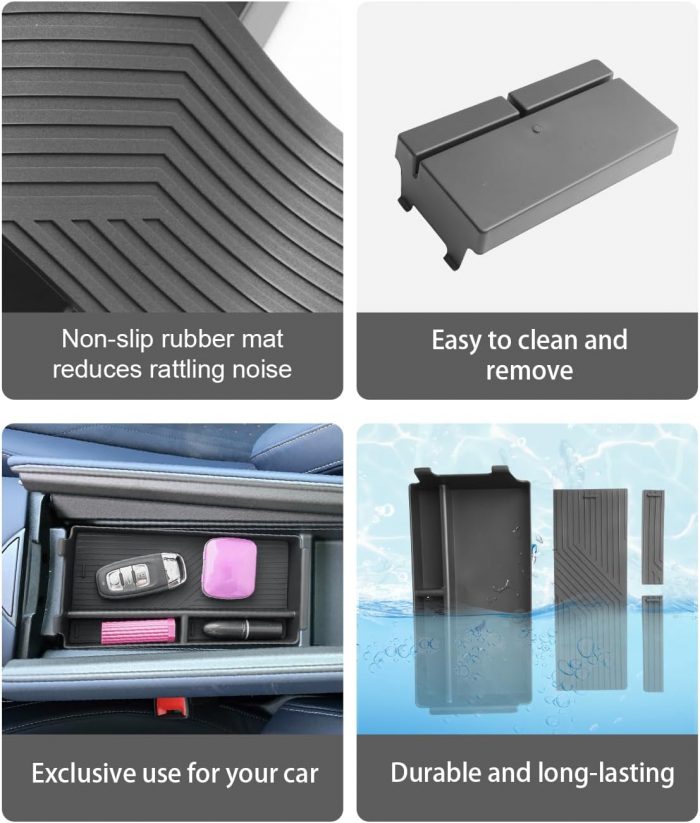 Easy to Install It has the same size as the original vehicle and can be installed directly without modification. The built-in non-slip mat prevents the item from sliding inside the storage box and prevents unusual noises.