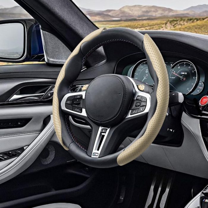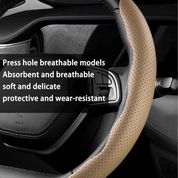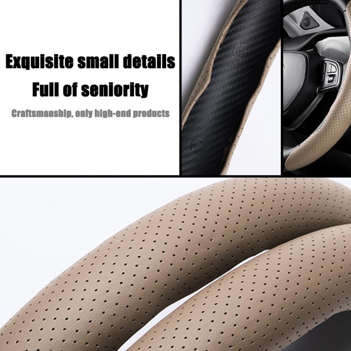 CGEAMDY Car Steering Wheel Cover, Carbon Fiber Steering Wheel Cover, Universal 38 cm, Segmented Steering Wheel Protector, Non-Slip and Durable, Breathable Steering Wheel Cover (Apricot)