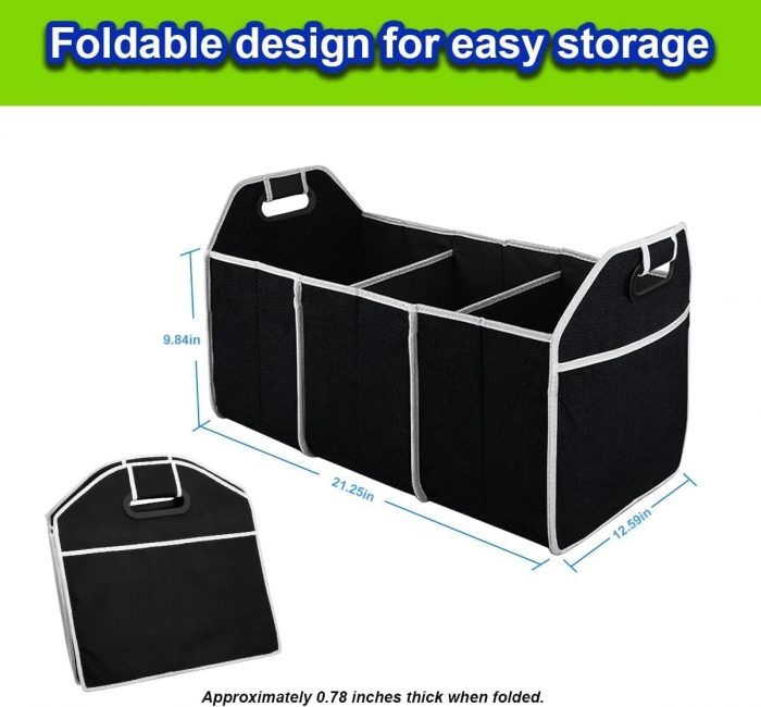 【Sturdy & Durable】 This sturdy car trunk organizer is made of high quality waterproof oxford polyester and comes with sturdy dividers, reliable base plate and sturdy handle with large load capacity. The sturdy material allows you to add goods without easily bending or falling apart. It is always strong and will withstand repeated use for a long time.