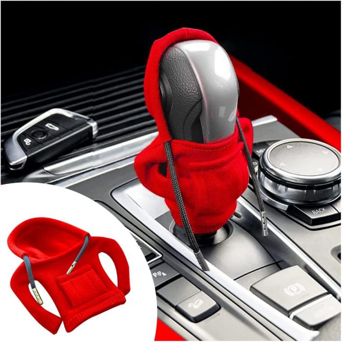 CGEAMDY Gear Shift Knobs Hoodie, Automatic Knob Gear Stick Protector, Universal Auto Knob Gear Stick Protector, Accessories for Interior Car Decoration (Red)