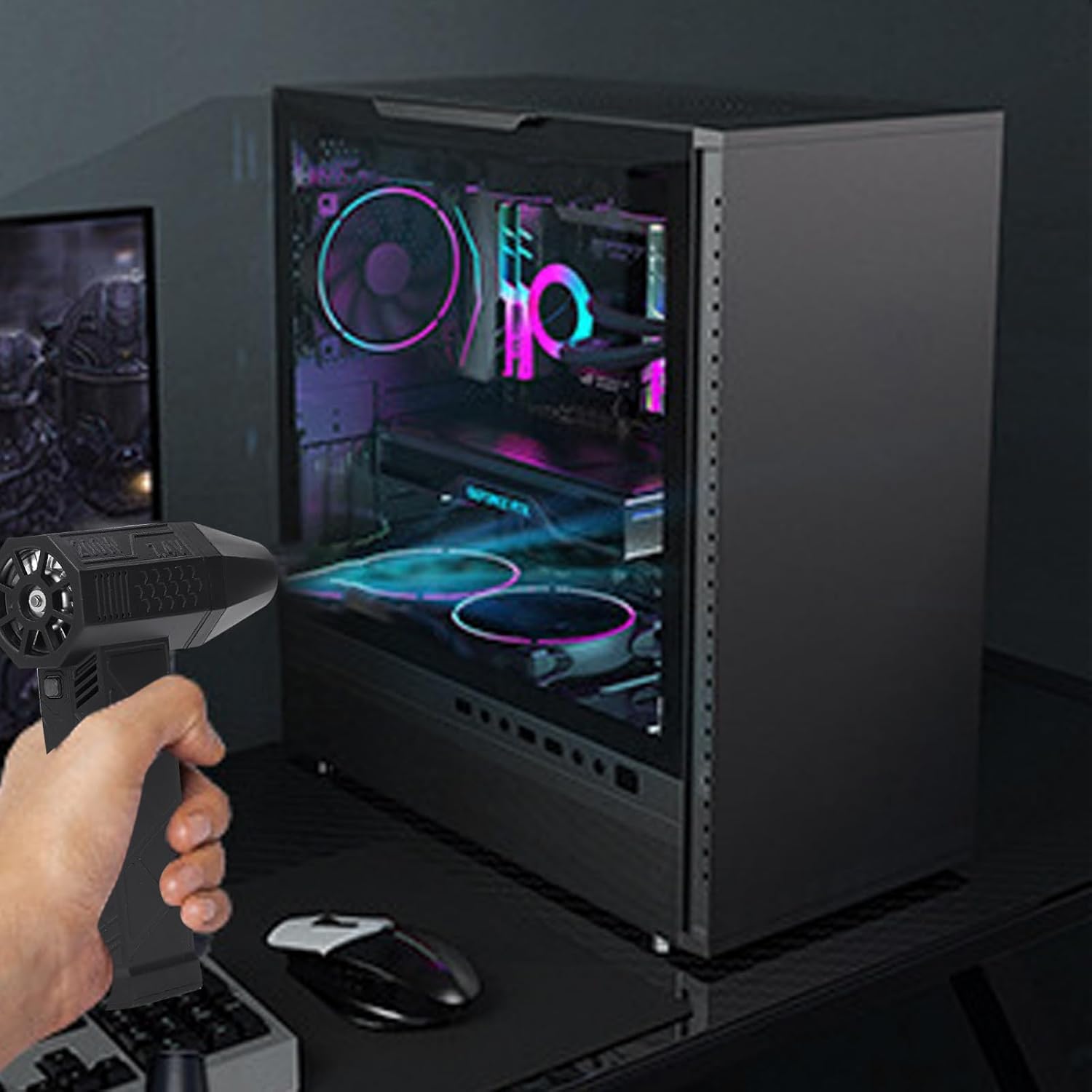 【Super Wind Speed】- This amazing rechargeable air duster features three levels of wind speed adjustment, driven by a 130,000RPM high-speed brushless motor, features a powerful output speed of 125,000 RPM, which ensures long-term constant and intense power.