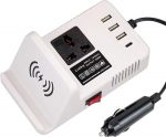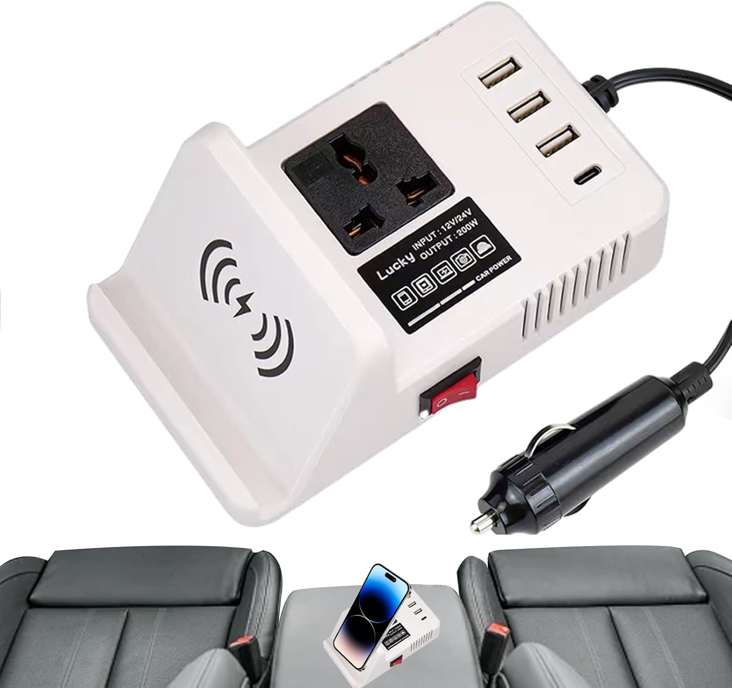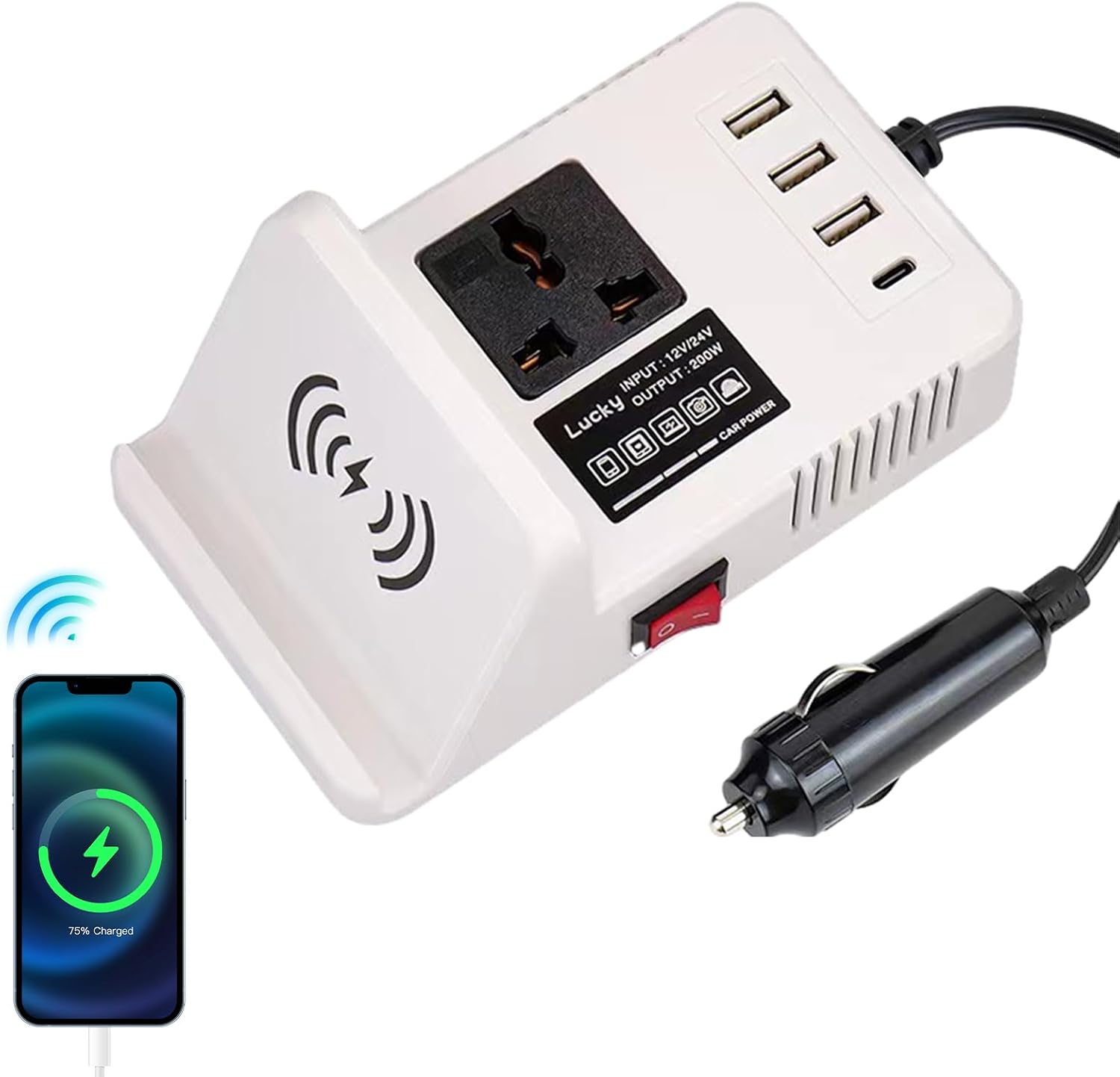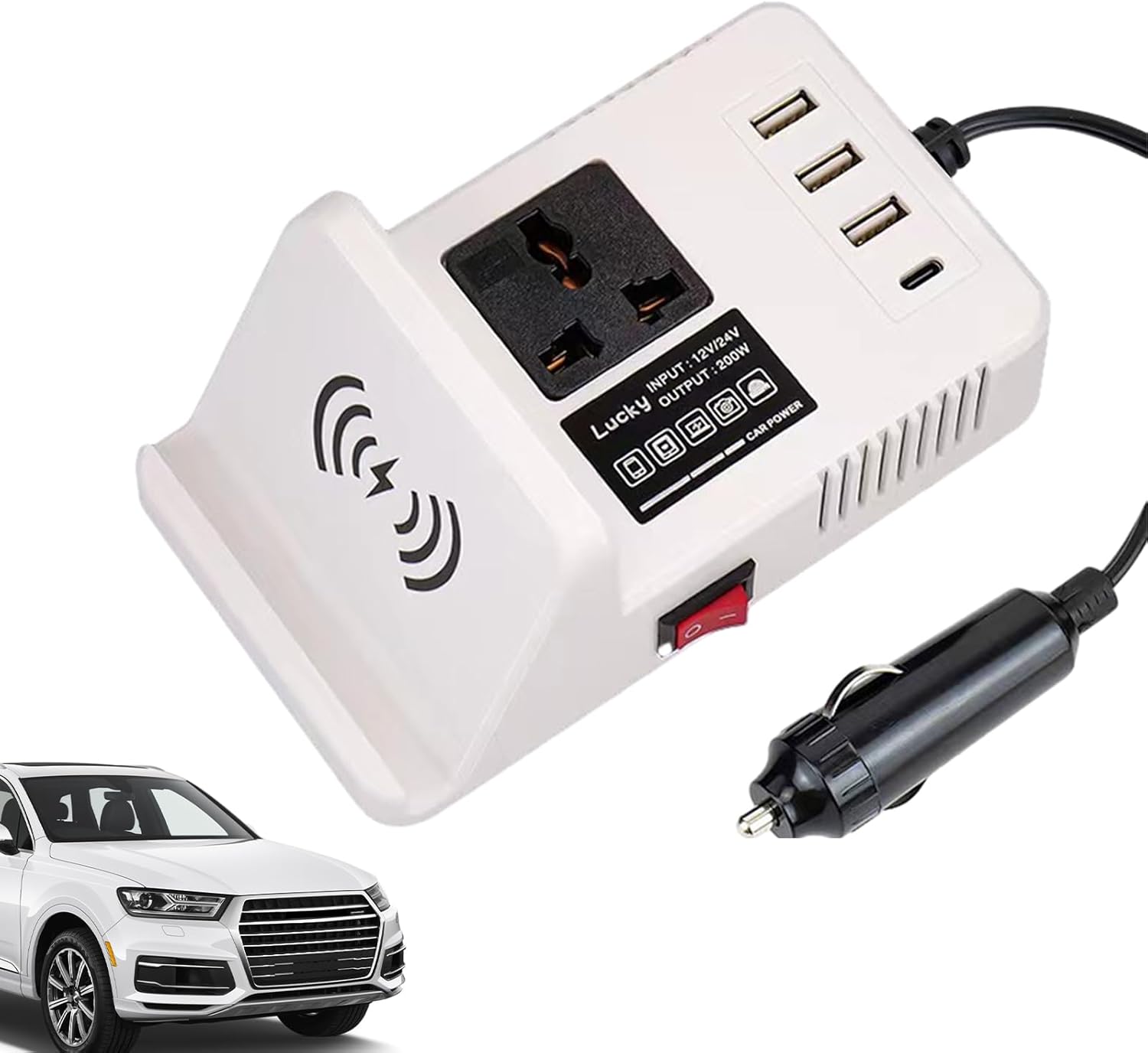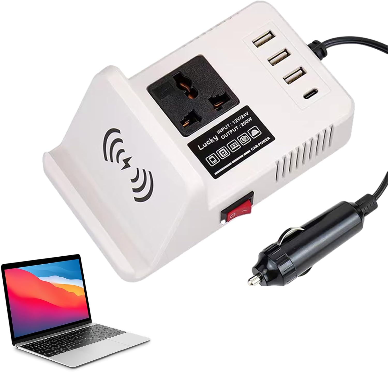 Carga rápida: con salidas, incluida una carga rápida sin inalámbrico, 3 puertos USB, un puerto tipo C y un enchufe, este inversor de automóvil ofrece una solución versátil para satisfacer las necesidades de carga de varios dispositivos al mismo tiempo.