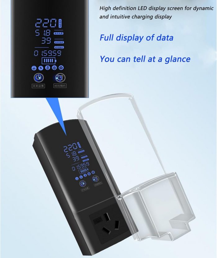 FUNCTION: This electric car charger No grounding wire, scheduled charging, fully charged and disconnected, voltage display, battery level display, rain and dust prevention, display/temperature control protection