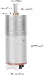 Dimensiones:Diámetro exterior: 25 mm/0,98 pulgadas ; Longitud del eje: 12 mm/0,47 pulgadas ; Diámetro del eje: 4 mm/0,16 pulgadas