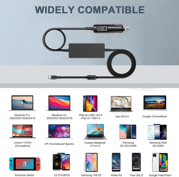 DC Adapter 12V/24V 100W 90W USB C Car Charger for Microsoft Surface Laptop 4 3 Pro 8, MacBook Pro 15/16 MacBook Air, Lenovo Yoga 7i Yoga 9, Lenovo Ideapad 5 Pro, Dell XPS 15 9570