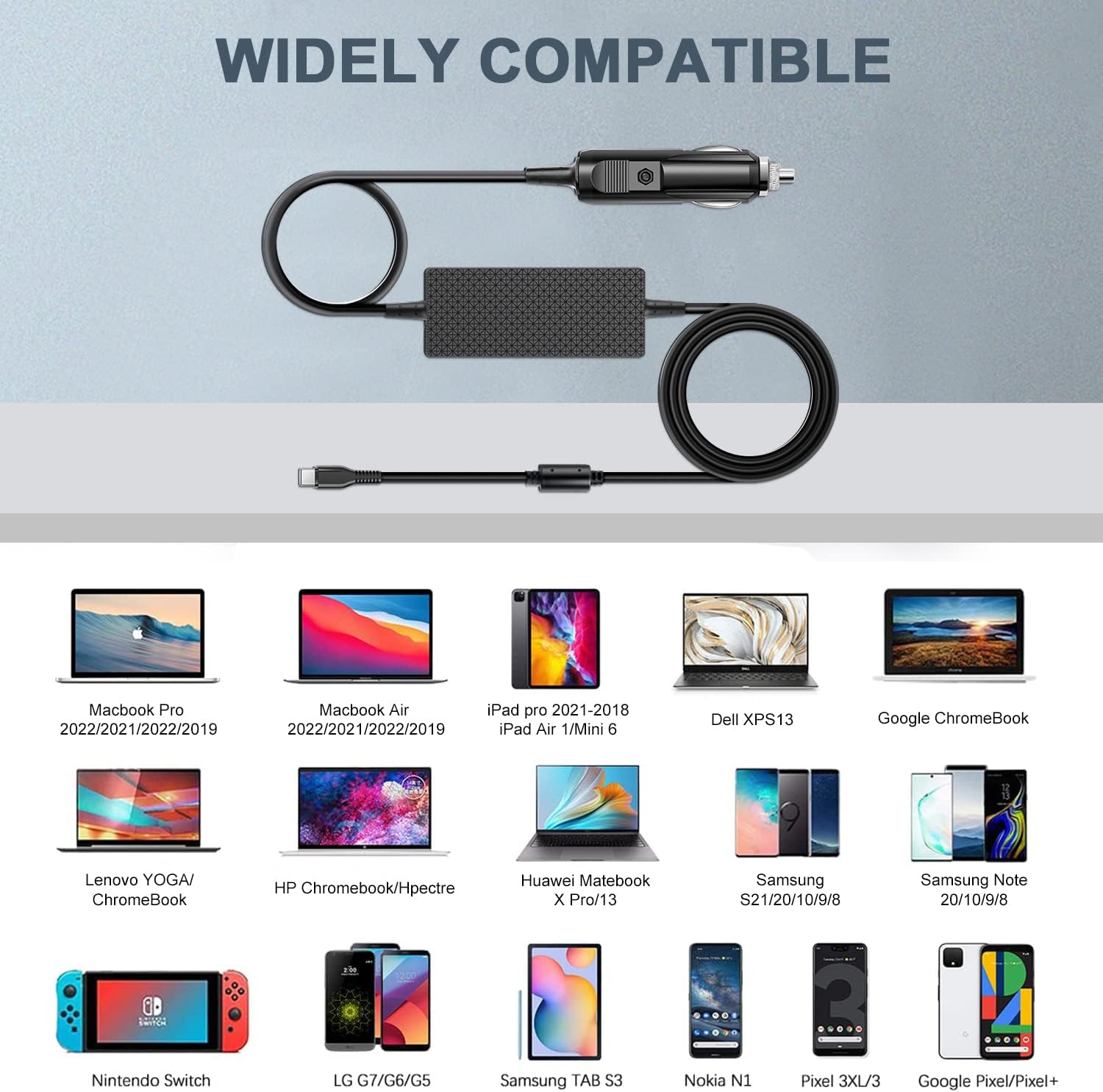 Inicio DC Adapter 12V/24V 100W 90W USB C Car Charger for Microsoft Surface Laptop 4 3 Pro 8, MacBook Pro 15/16 MacBook Air, Lenovo Yoga 7i Yoga 9, Lenovo Ideapad 5 Pro, Dell XPS 15 9570