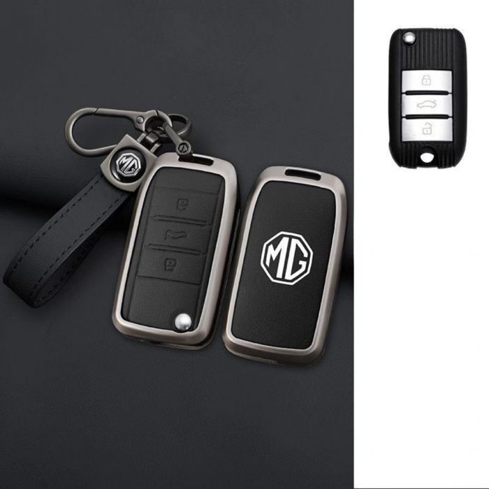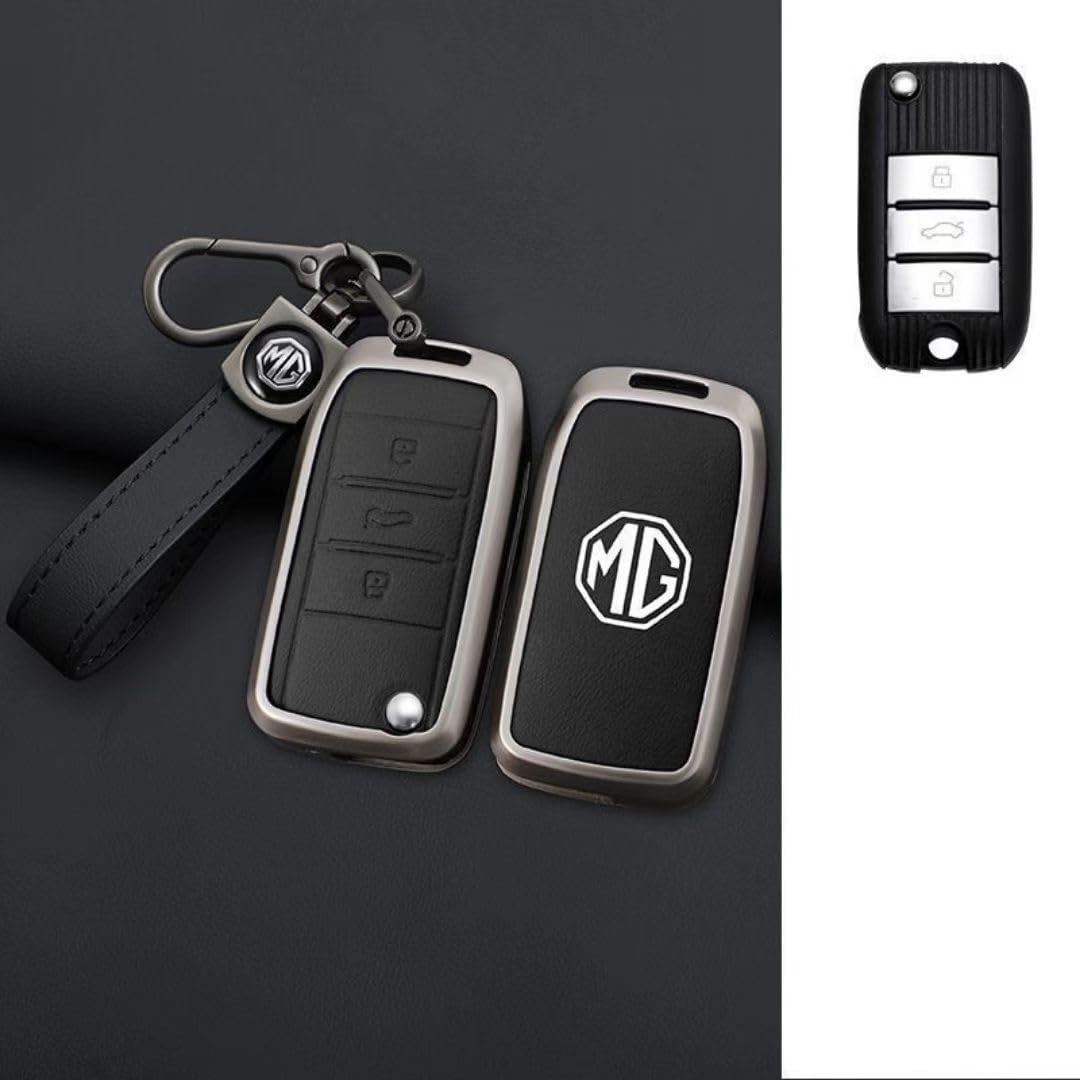 DDHHBH Carcasa Llave para MG ZS,Aleación Protege Mando de Coche Tapas Llave Antiarañar Fundas para Llave con Emblema con Blando Cuero Llavero Gadgets Coche Interior,B-3