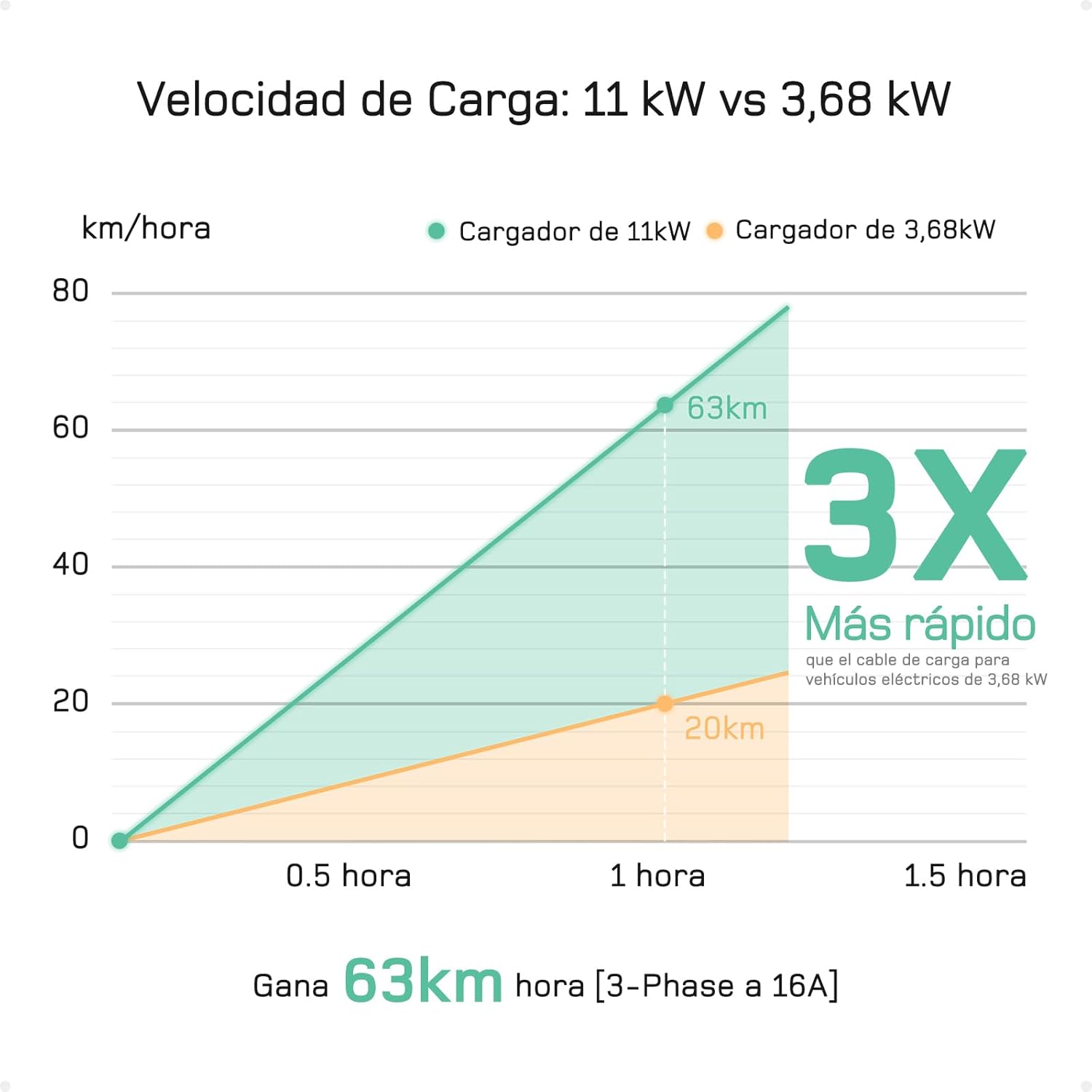 【3 Fois plus Rapide que l’origin】Con el premio CEE 16A, obtienes una carga de energía de 11kW por hora (230Vx16Ax3). 3 fois plus rapide que les prises Schuko domestiques normal. Economía 13 horas al pasar el premio Schuko au premio CEE rojo 16 A.
